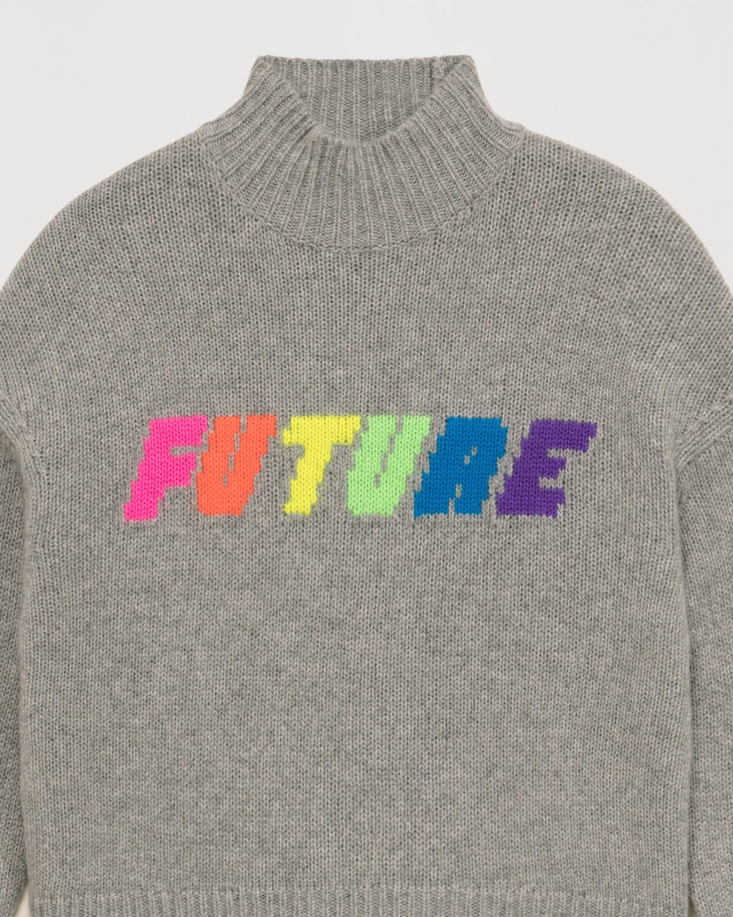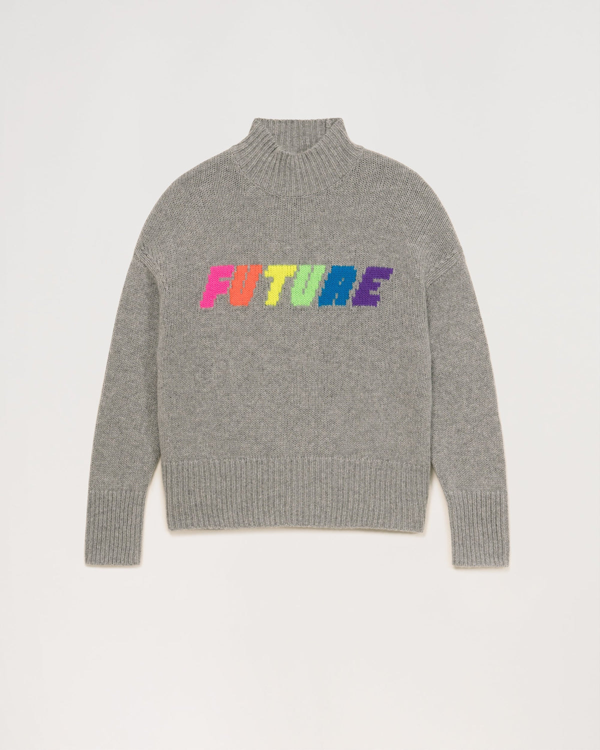Pull Col Montant Court Future 6 Fils - 100% Cachemire - Gris Chiné Foncé