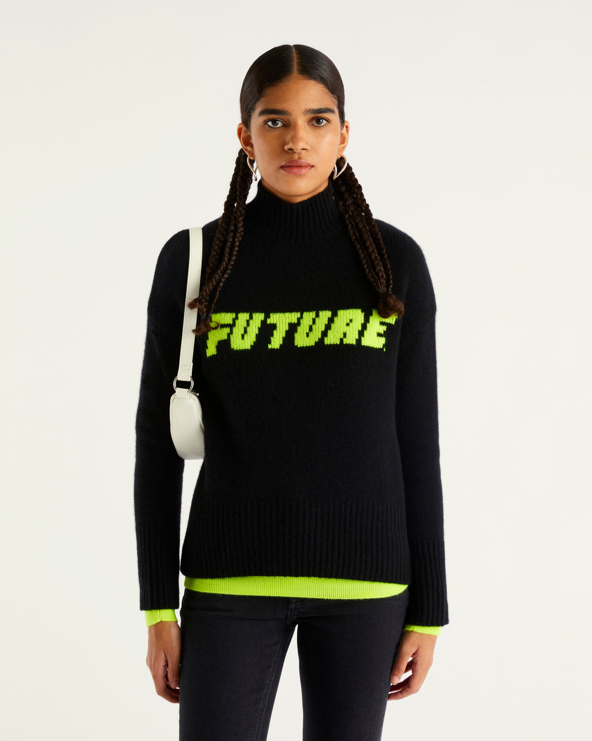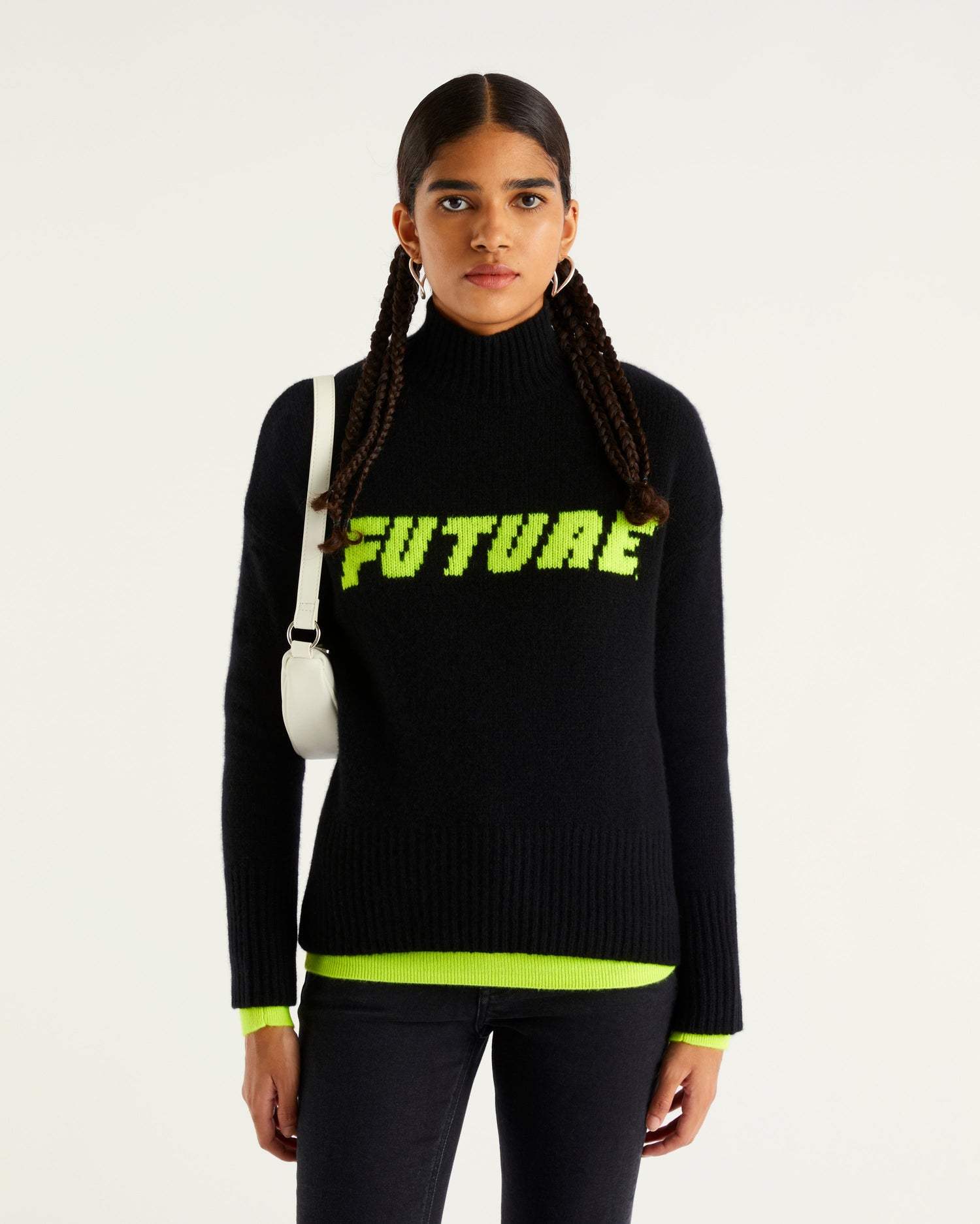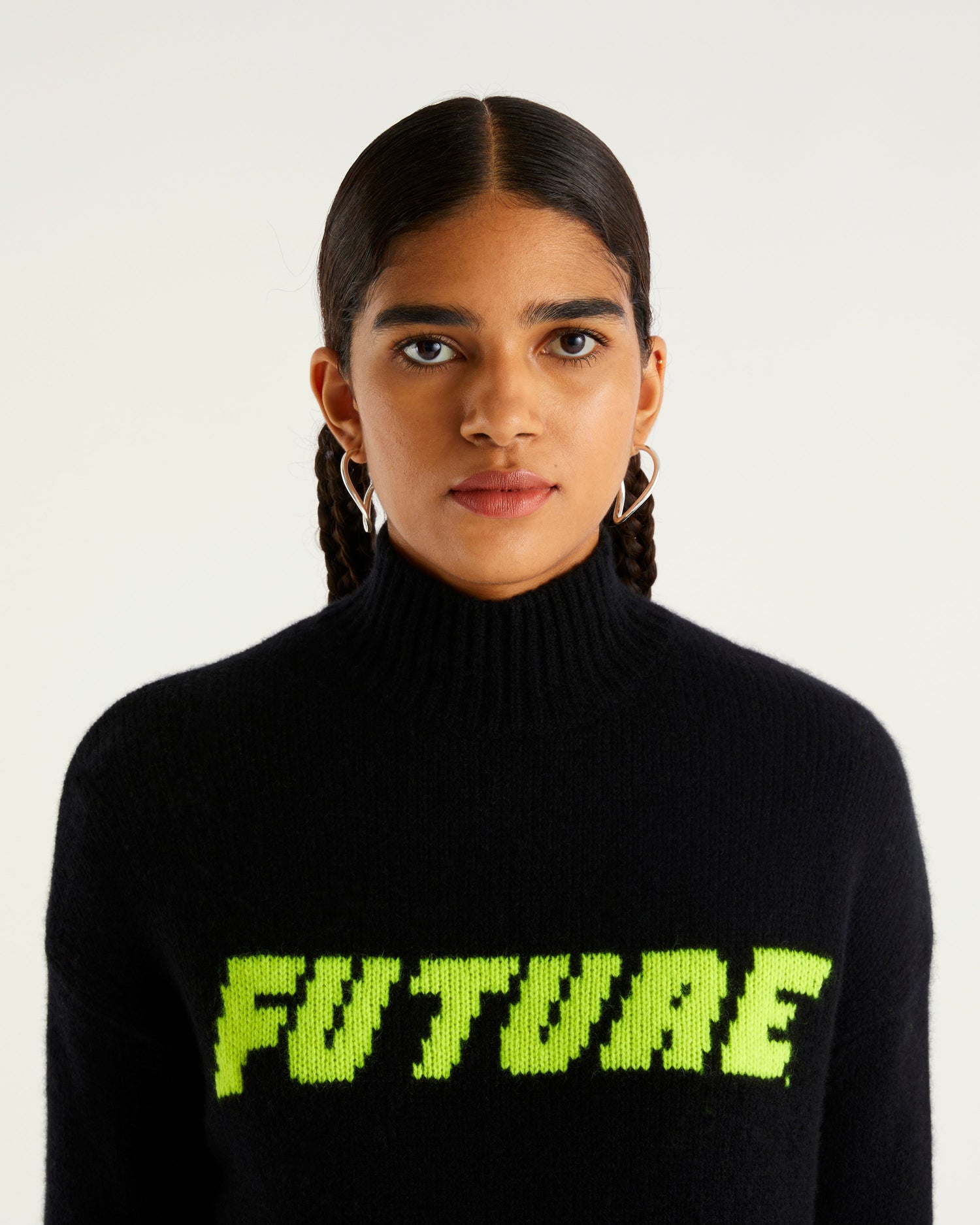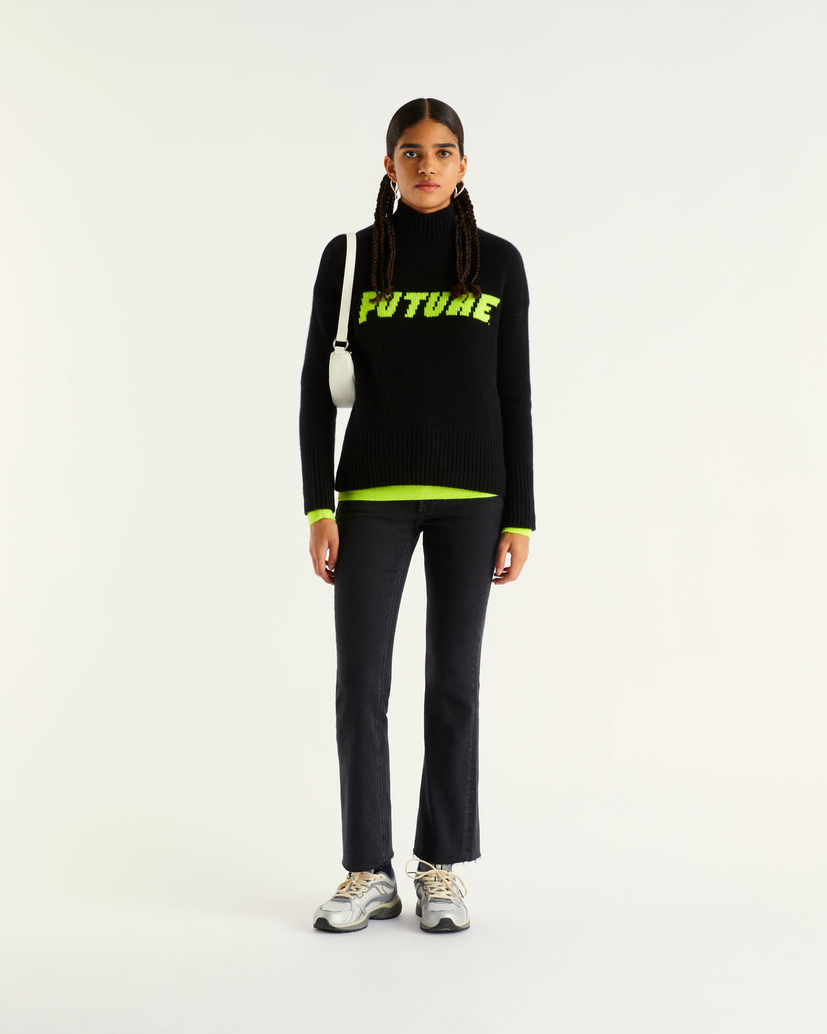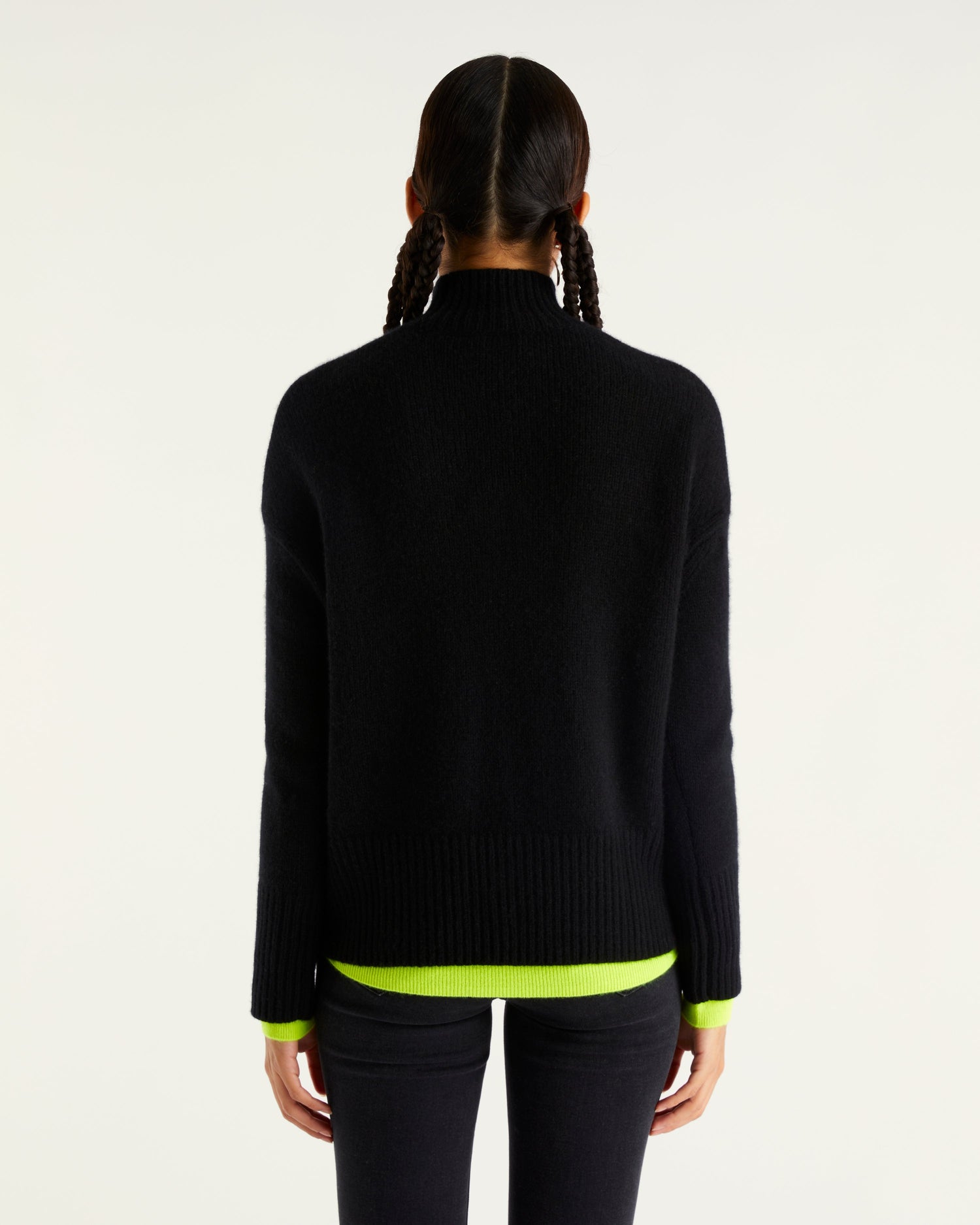 Pull Col Montant Court Future 6 Fils - 100% Cachemire - Noir