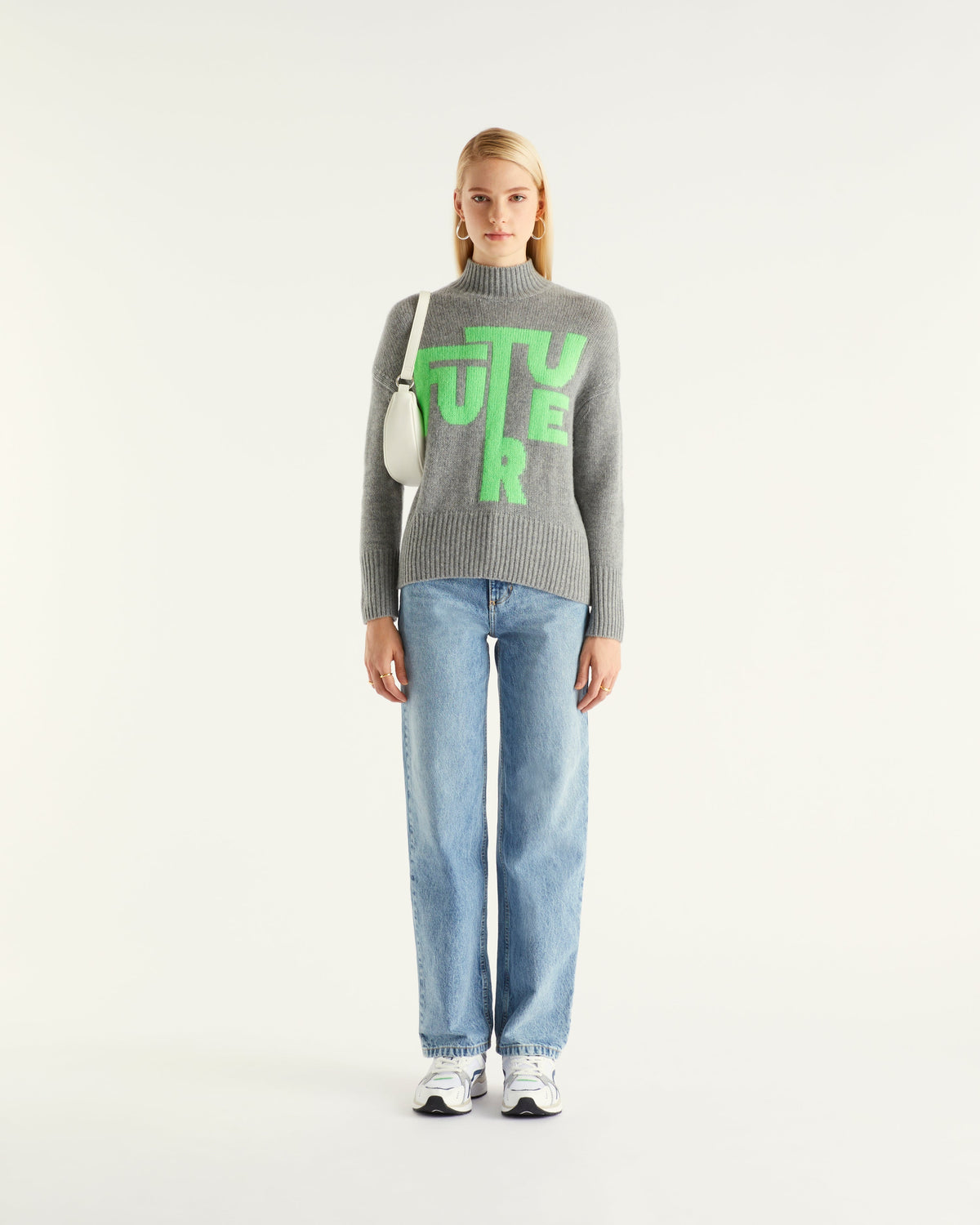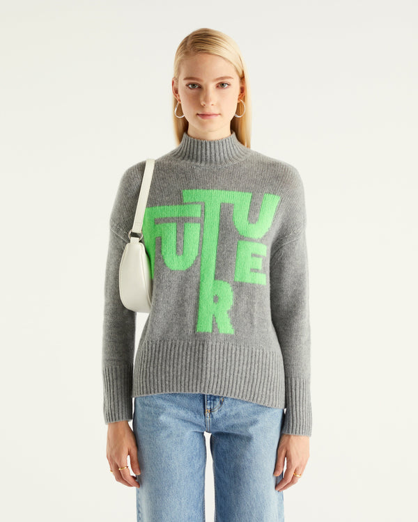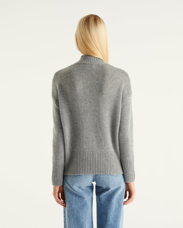 Pull Col Montant Court Maxi Future 6 Fils - 100% Cachemire - Gris Chiné Foncé