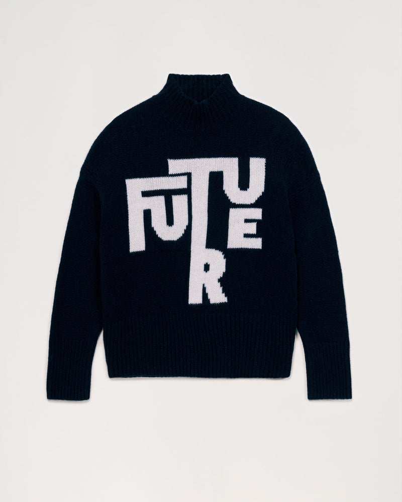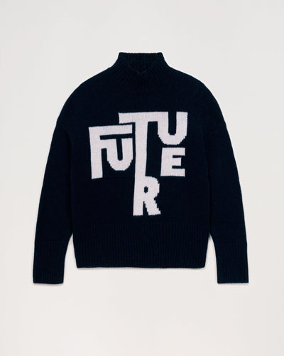 Pull Col Montant Court Maxi Future 6 Fils - 100% Cachemire - Navy