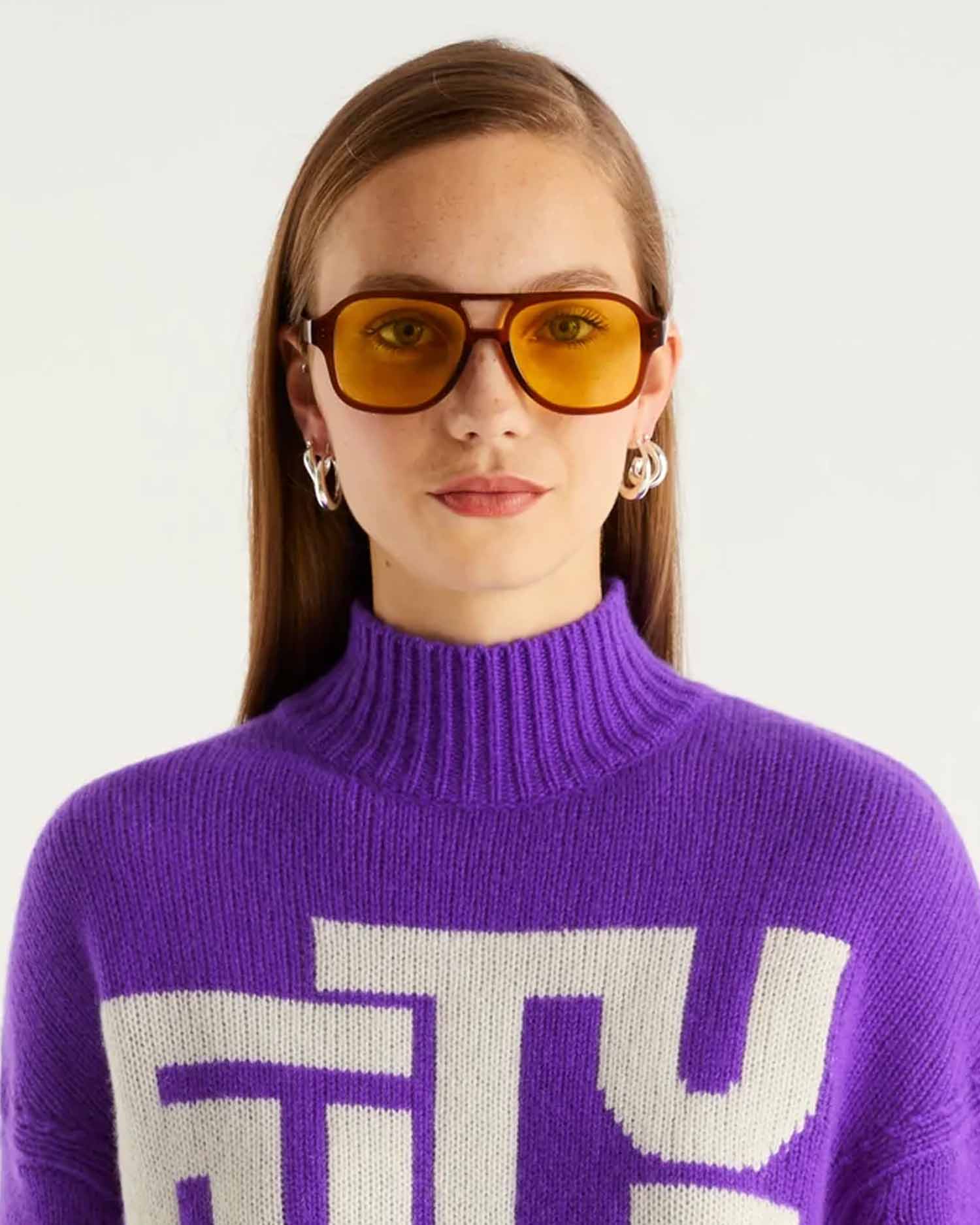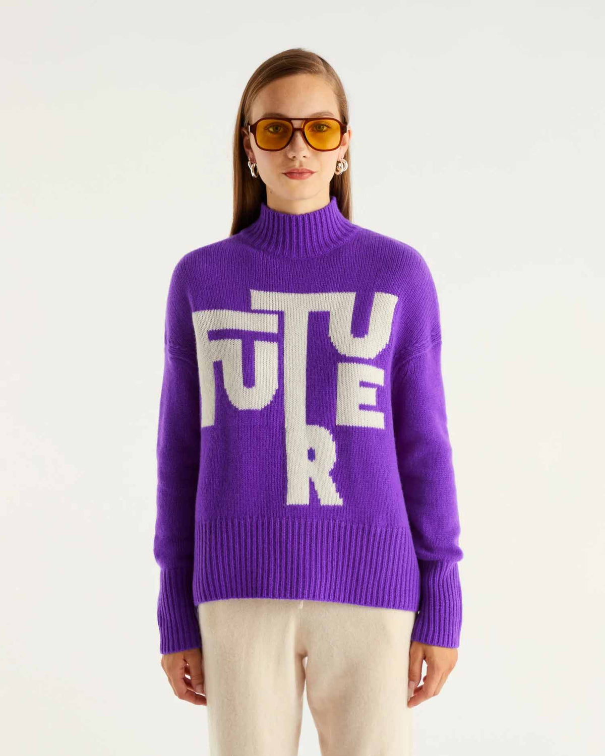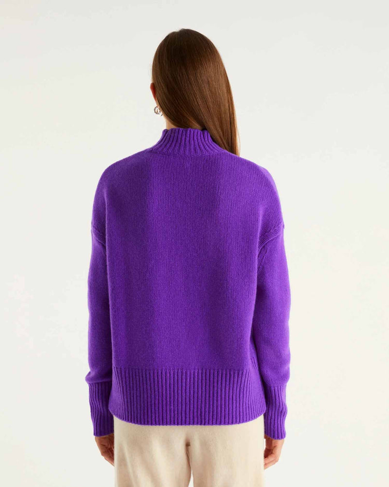 Pull Col Montant Court Maxi Future 6 Fils - 100% Cachemire - Violet Fluo