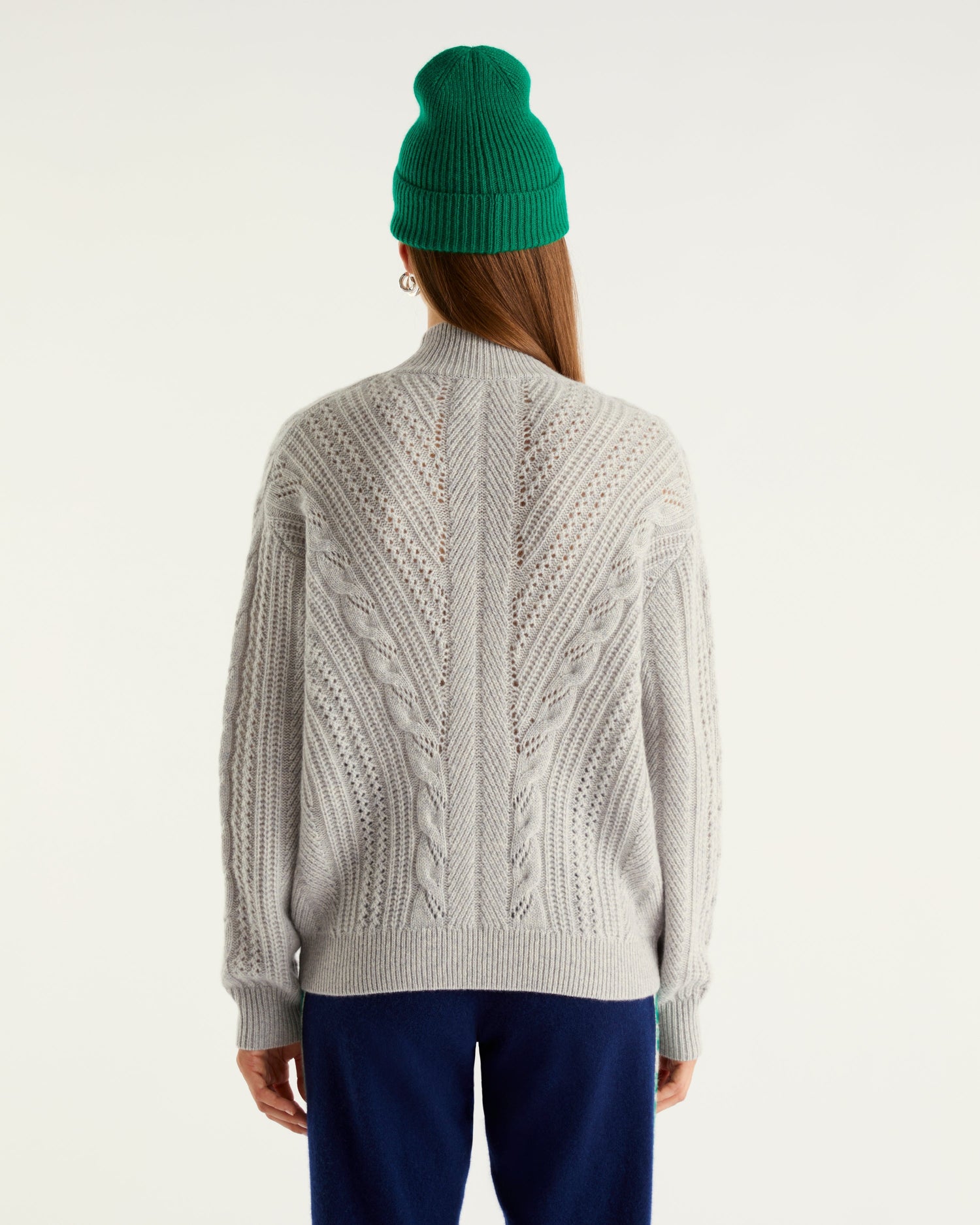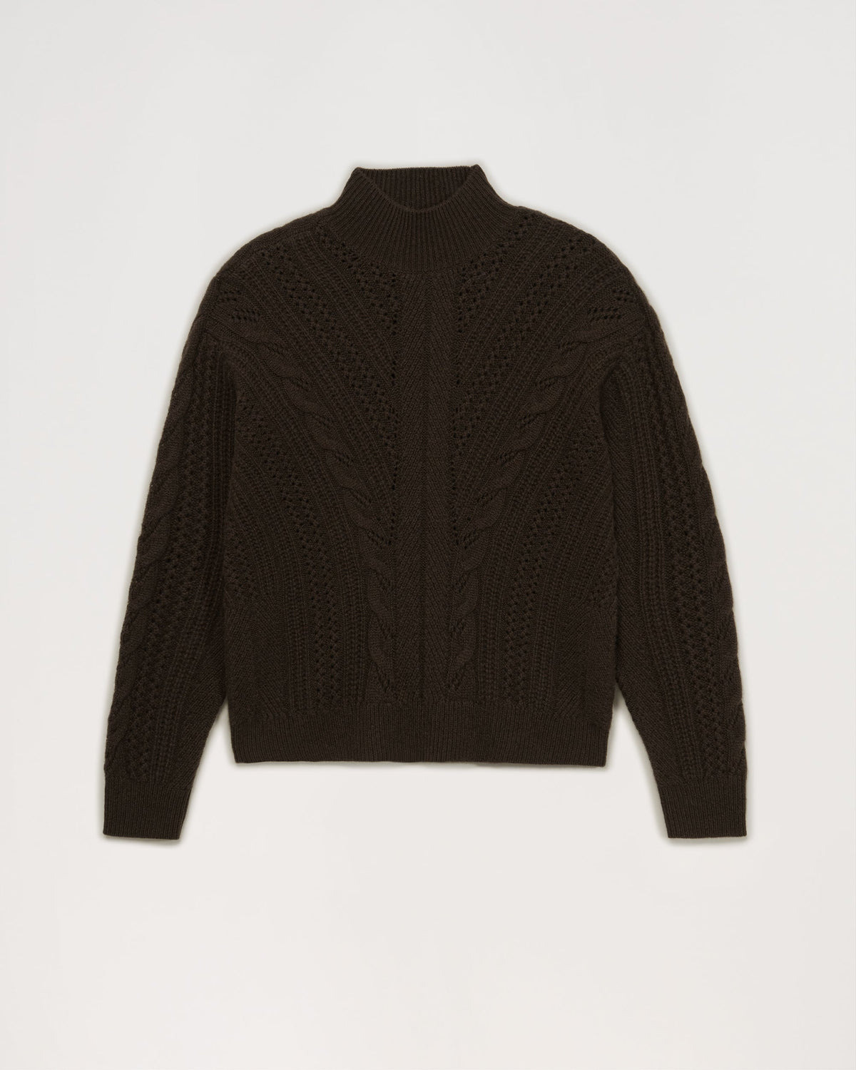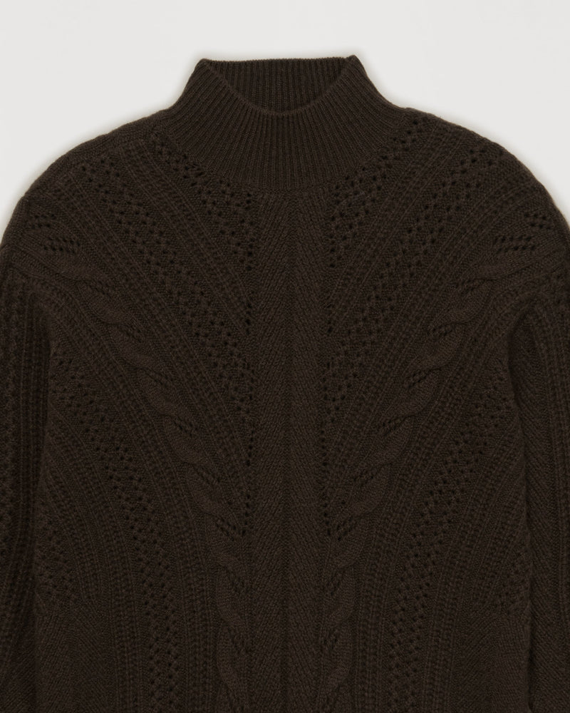 Pull Col Montant Court Oversize Torsades 6 Fils - 100% Cachemire - Chocolat