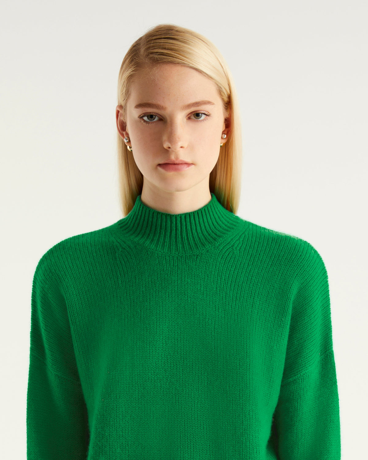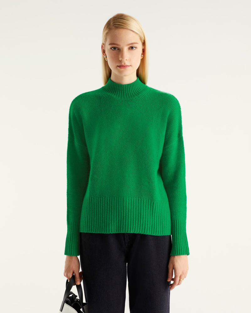 Pull Col Montant Oversize 6 Fils - 100% Cachemire - Winter green