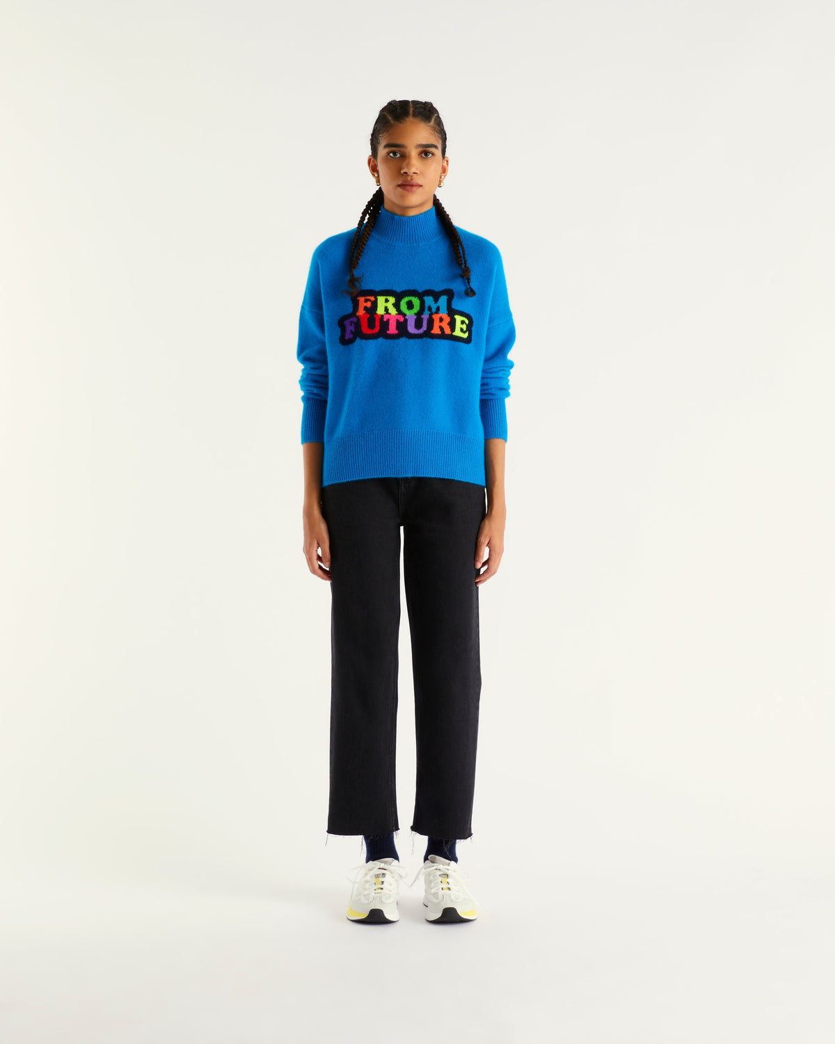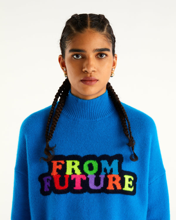 Pull Col Montant Oversize From Future 4 Fils - 100% Cachemire - Power Blue