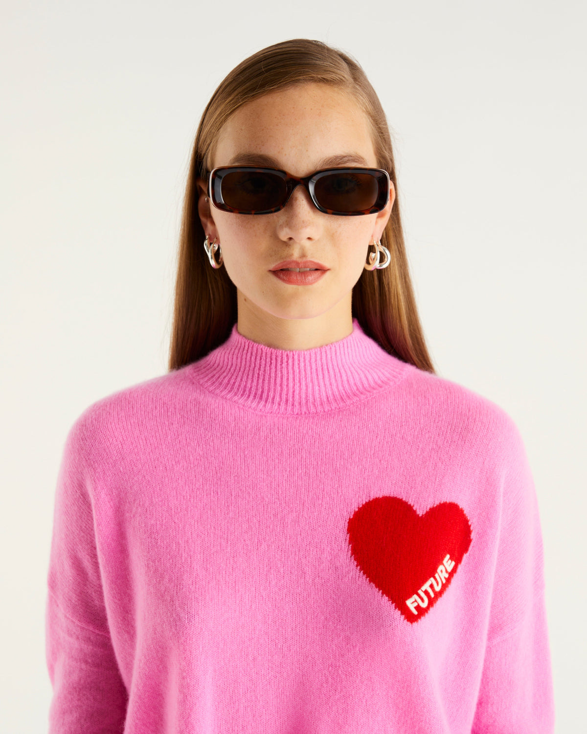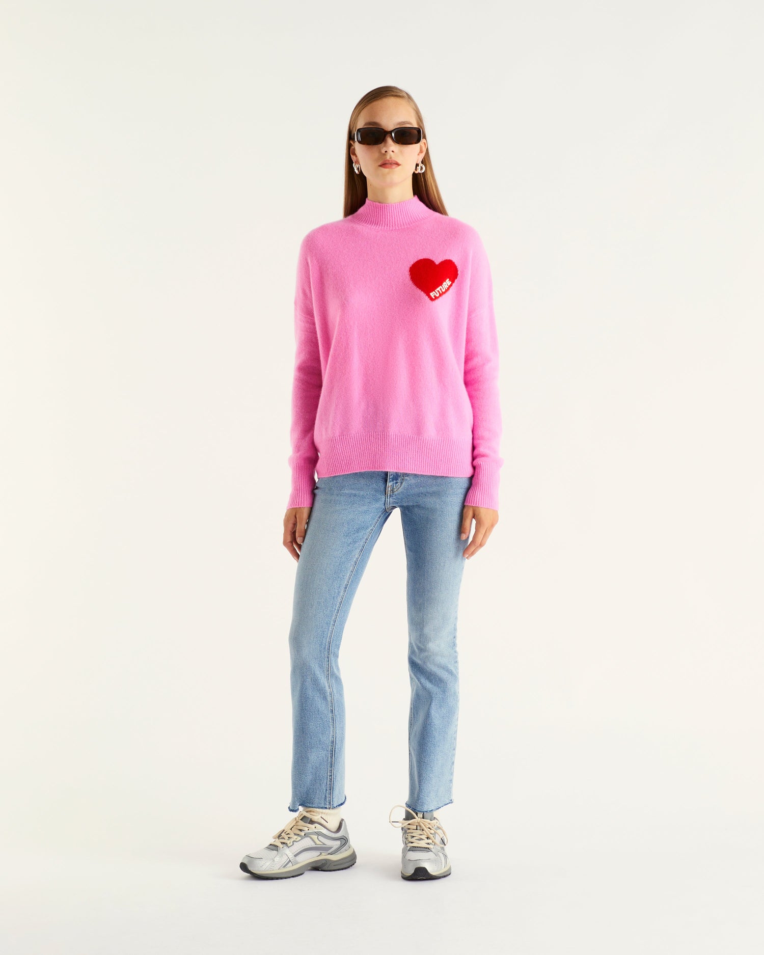 Pull Col Montant Oversize Future Cœur - 100% Cachemire - Pretty pink