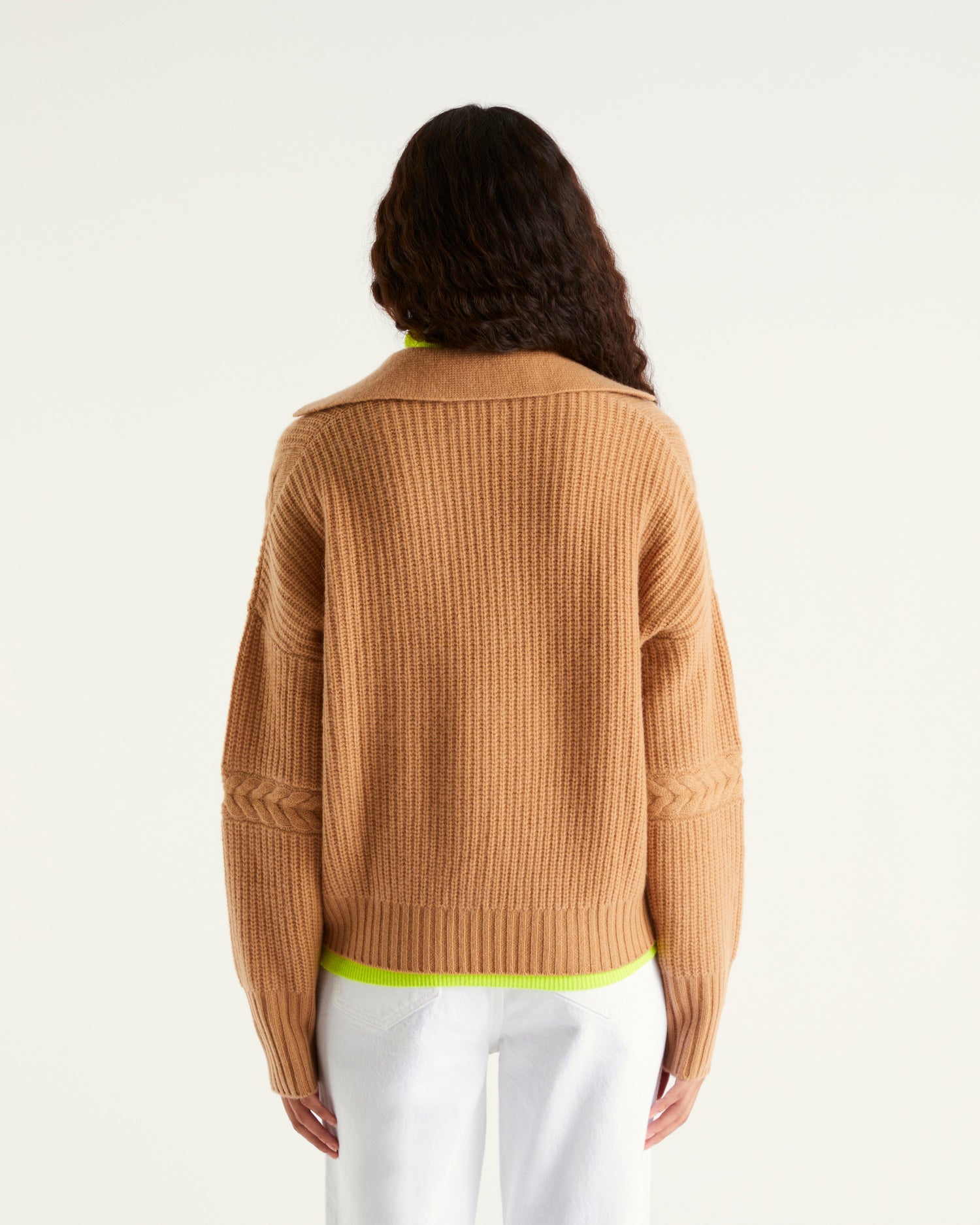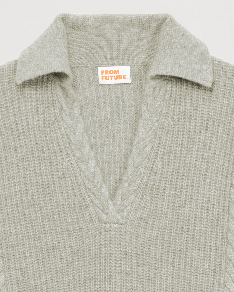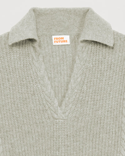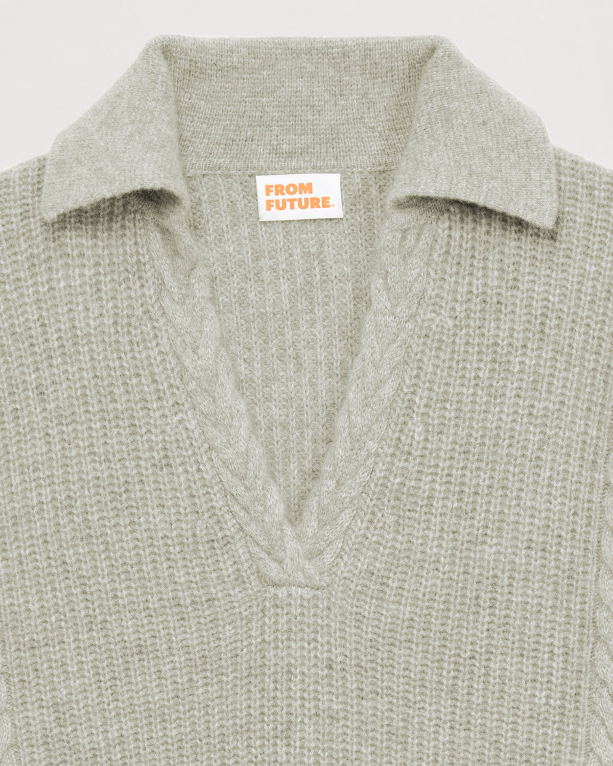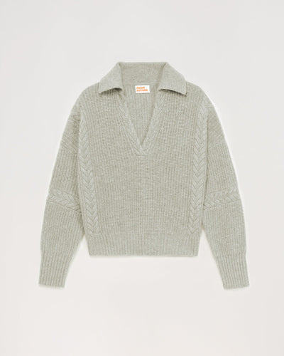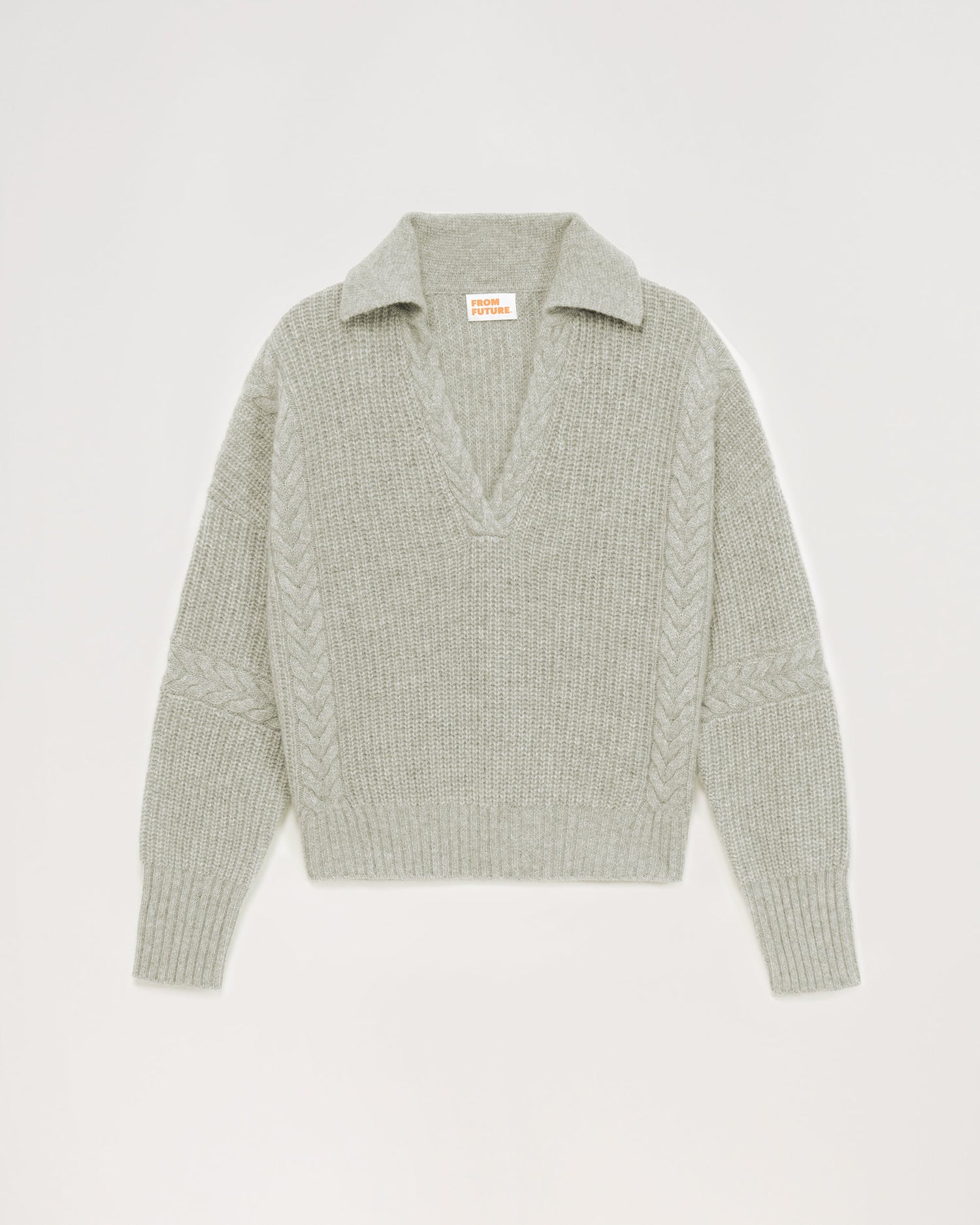 Pull Col Polo Court À Torsades 6 Fils - 100% Cachemire - Gris chine fonc