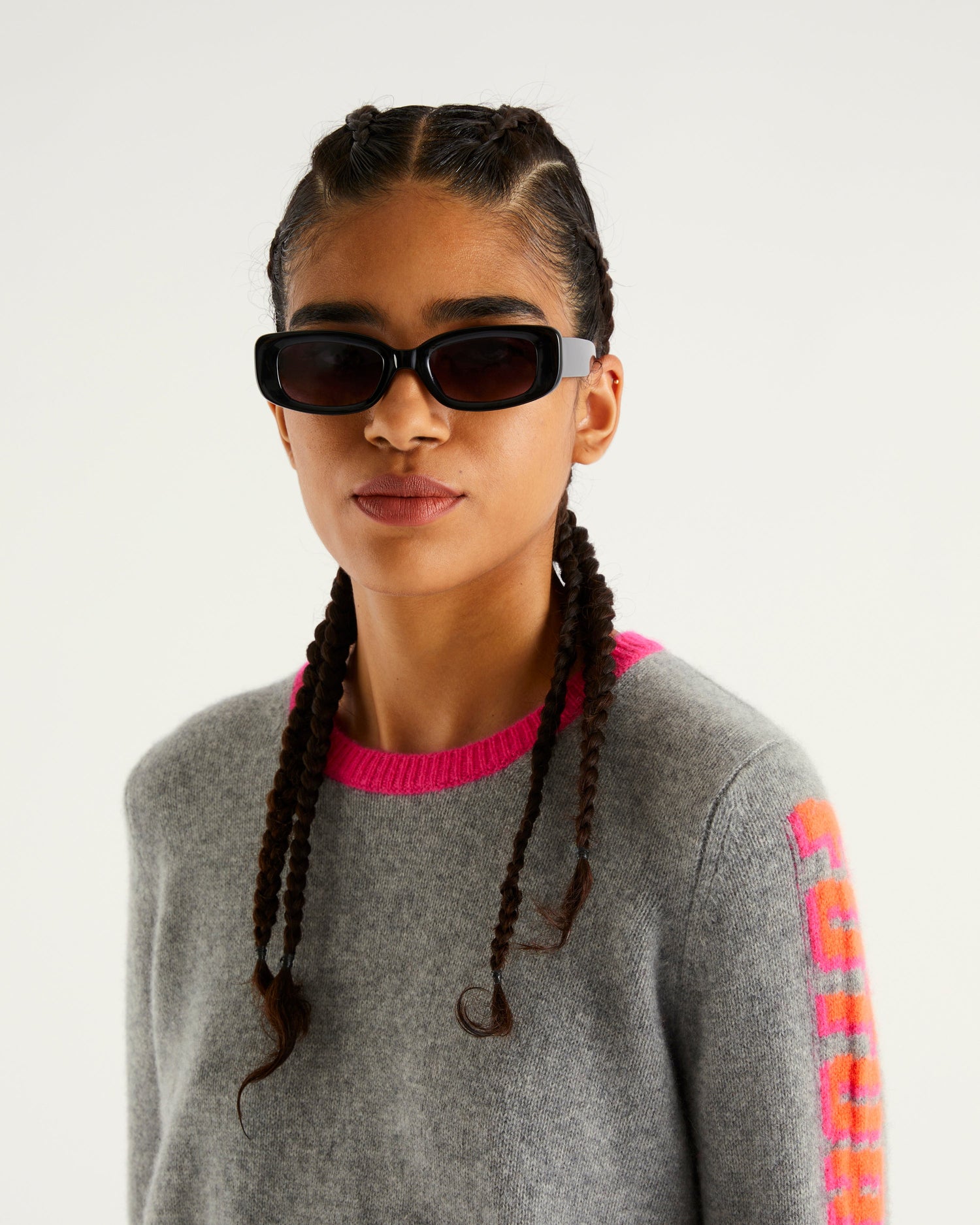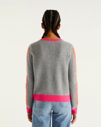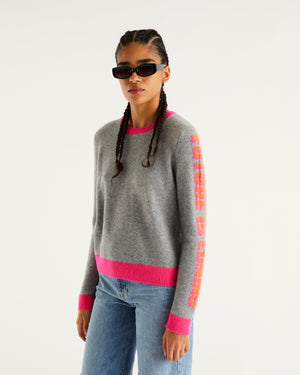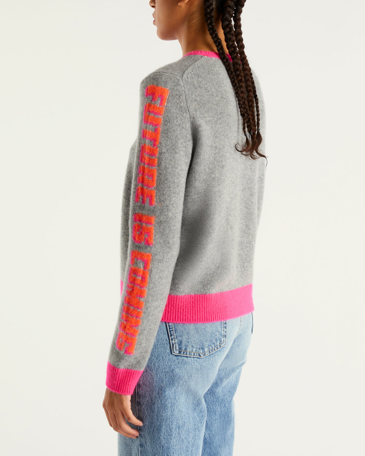 Pull Col Rond Court Future Is Coming Manche 4 Fils - 100% Cachemire - Gris Chiné Foncé