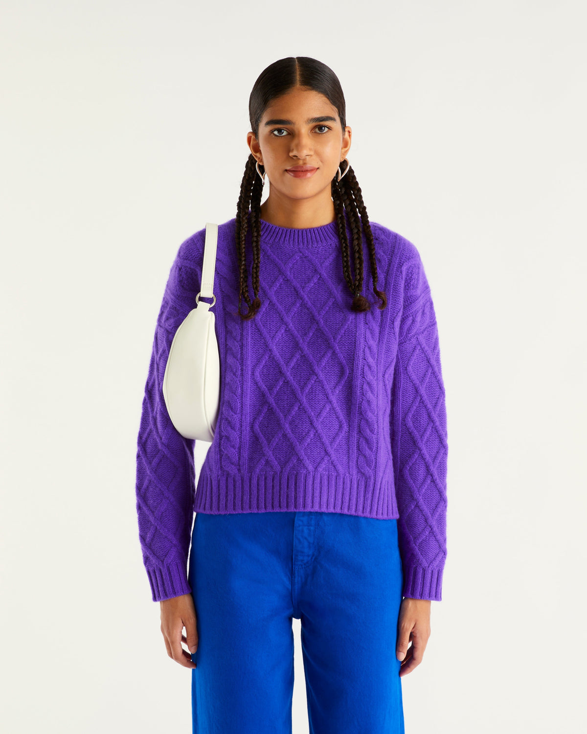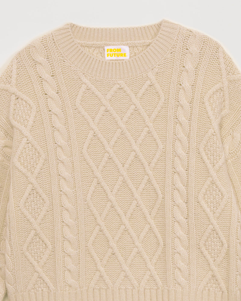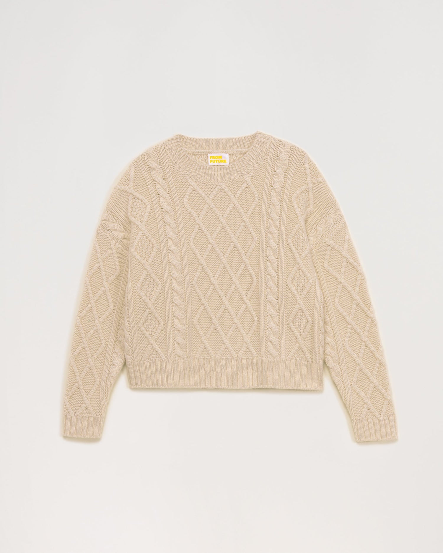 Pull Col Rond Court Point Fantaisie 10 Fils - 100% Cachemire - Sable