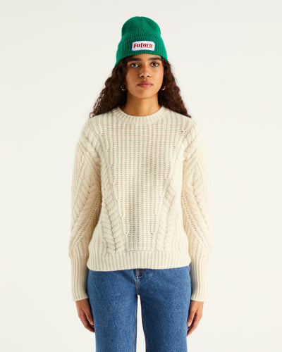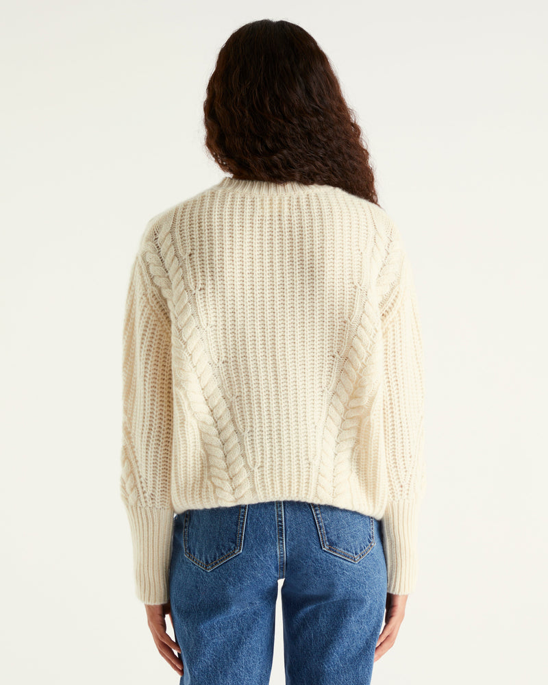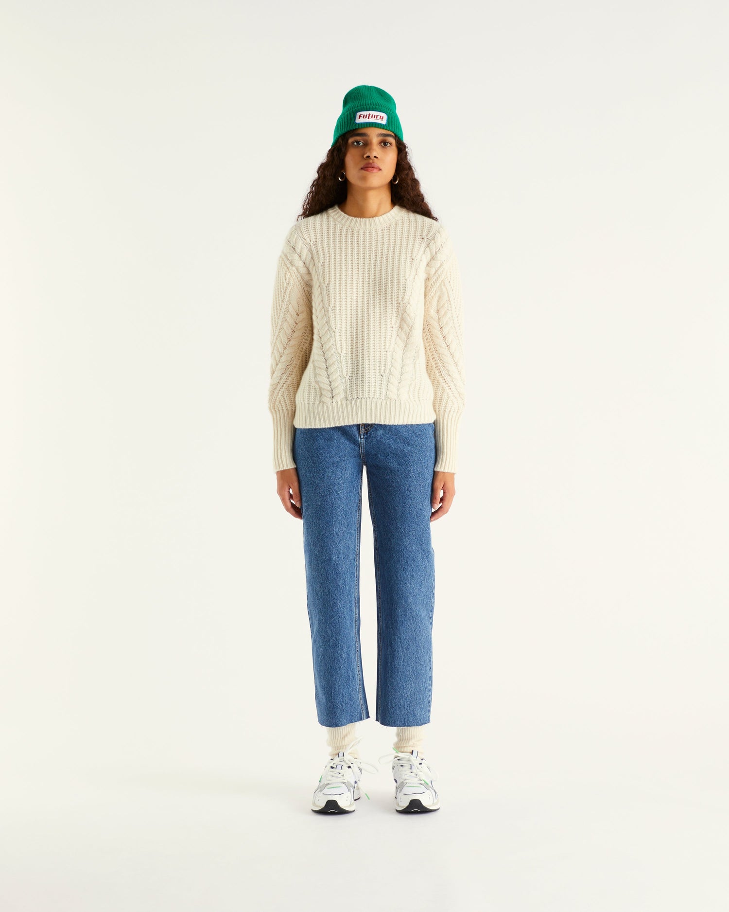 Pull Col Rond Maille Perlée À Torsades 6 Fils - 100% Cachemire - Ecru
