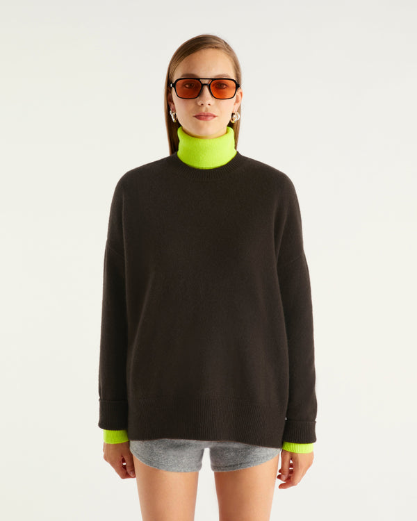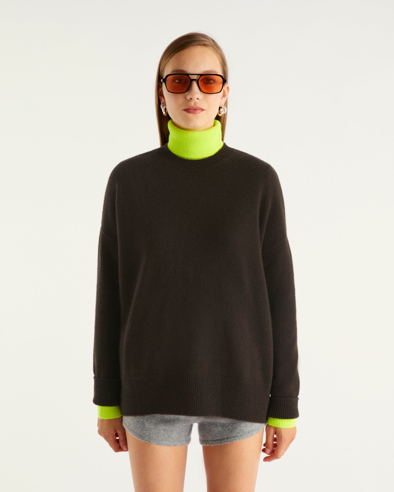 Pull Col Rond Oversize 4 Fils - 100% Cachemire - Chocolat