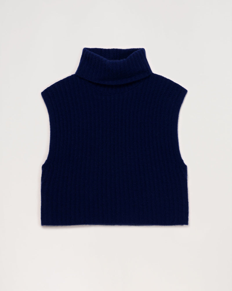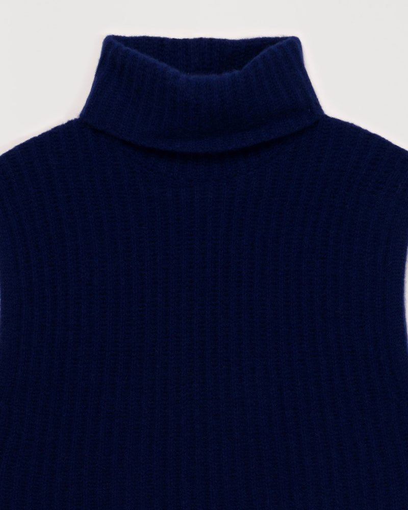 Pull Col Roulé Court Maille Perlée Sans Manche 10 Fils - 100% Cachemire - Encre