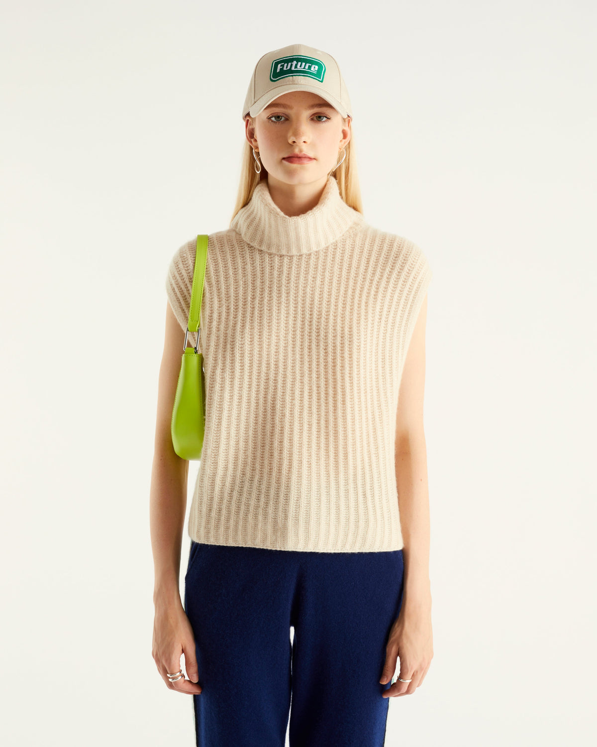 Col Roulé Court Maille Perlée Sans Manche 10 Fils