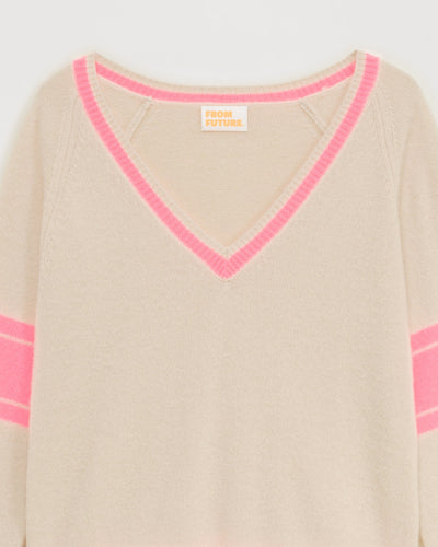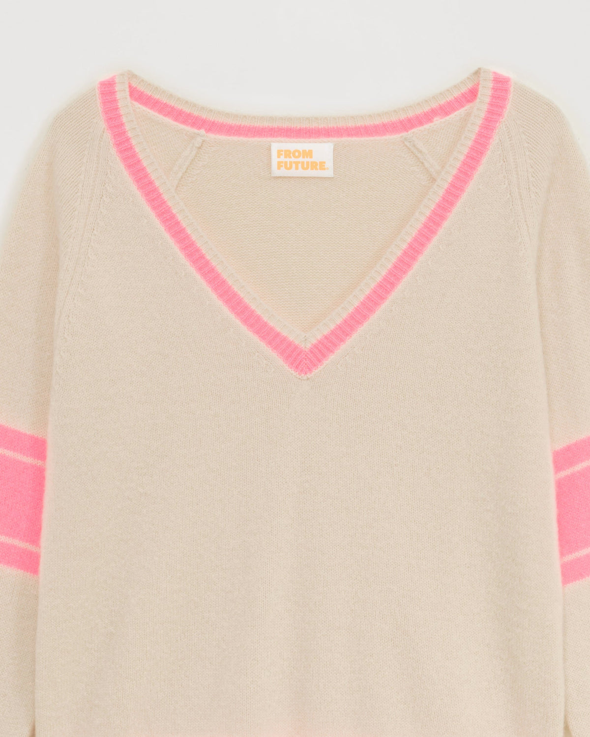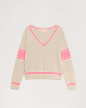 Pull Col V Court Brassard 4 Fils - 100% Cachemire - Sable