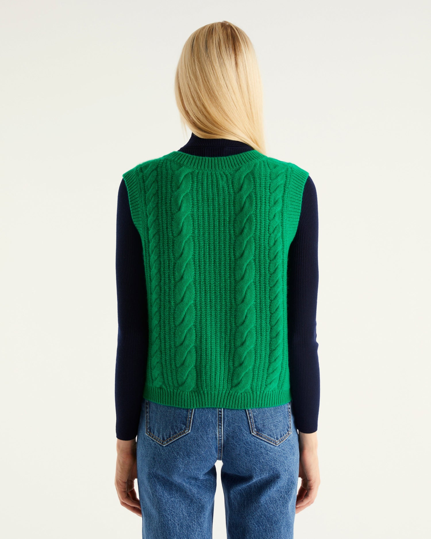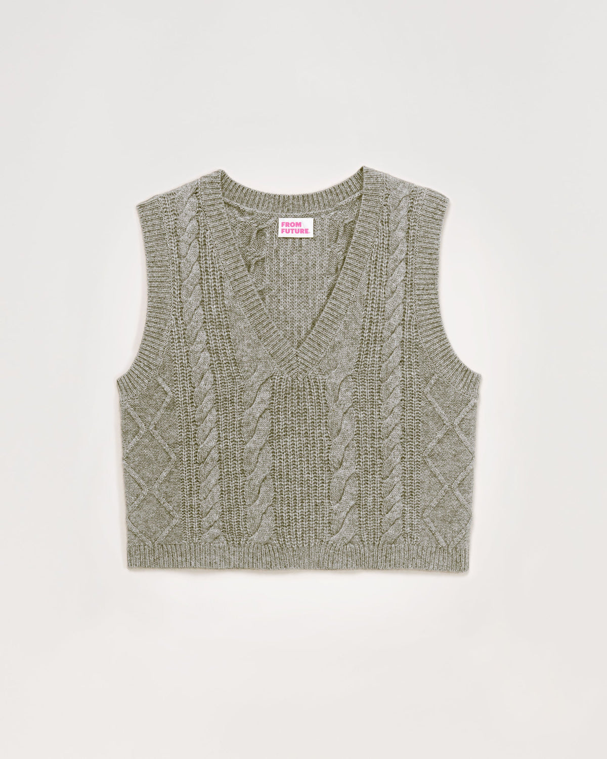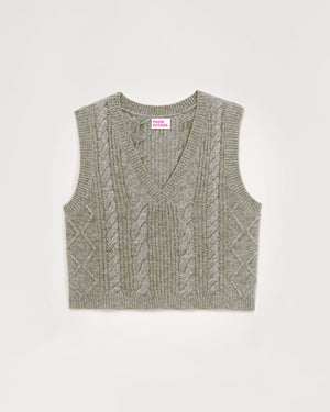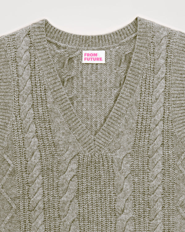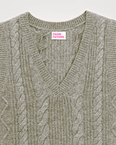 Pull Col V Court Sans Manche À Torsades 6 Fils - 100% Cachemire - Gris chine fonc
