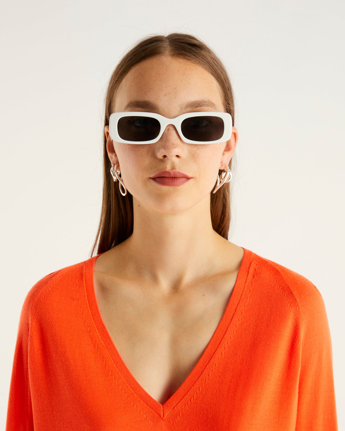 Pull Col V Oversize Ice Wool - 100% Laine Mérinos - Neon orange