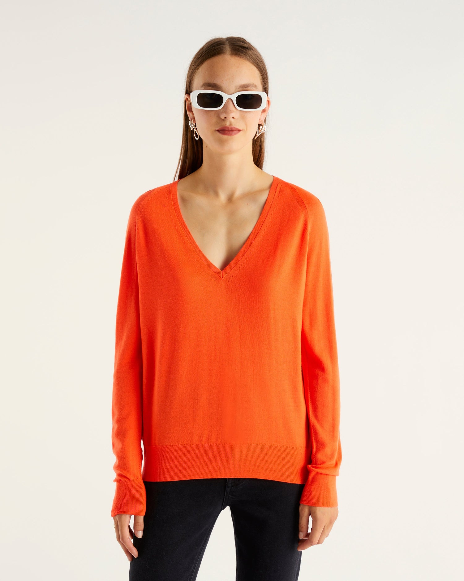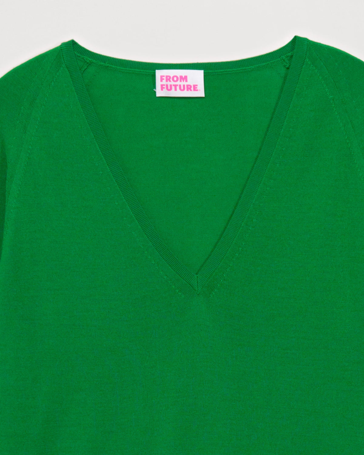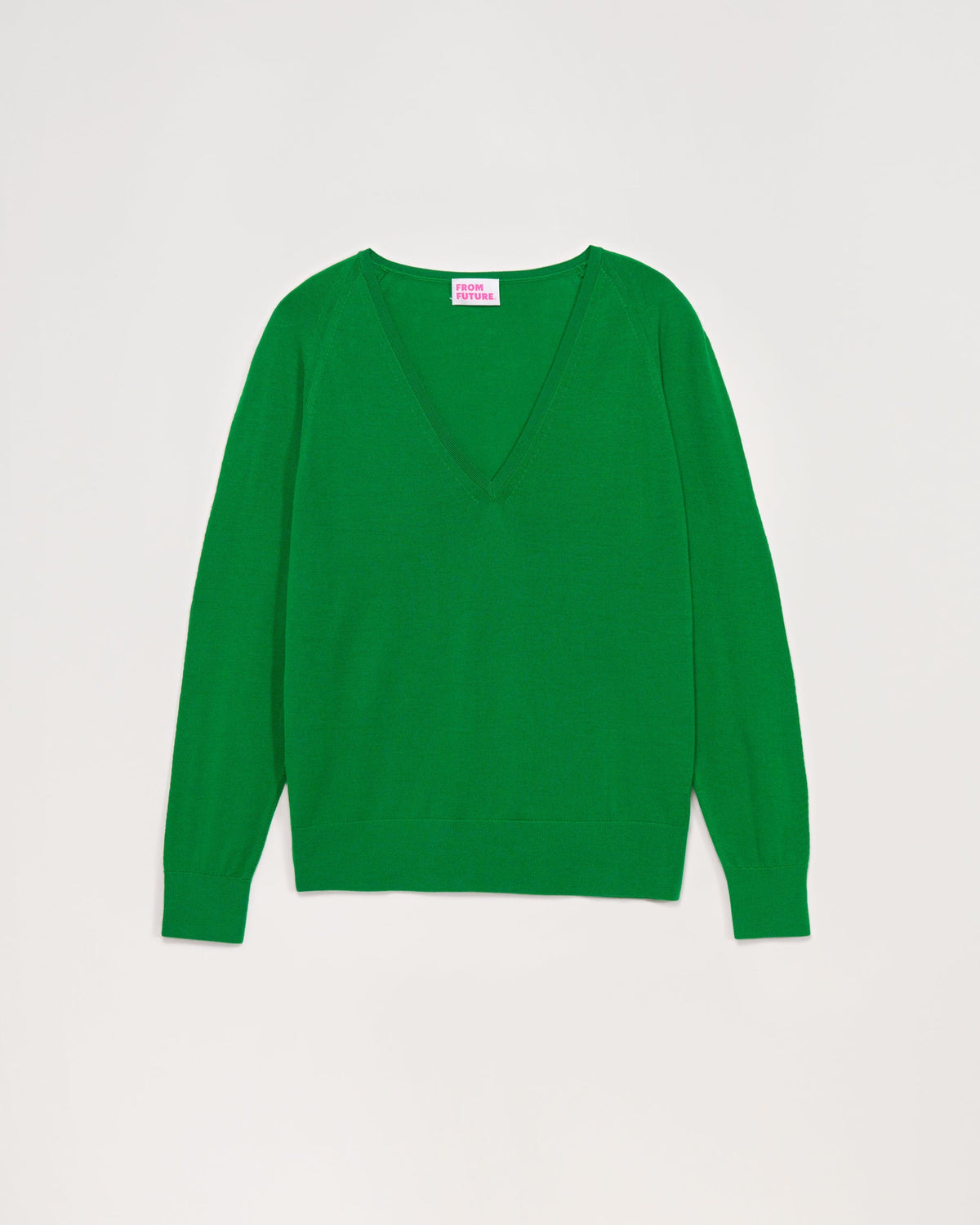 Pull Col V Oversize Ice Wool - 100% Laine Mérinos - Vert gazon