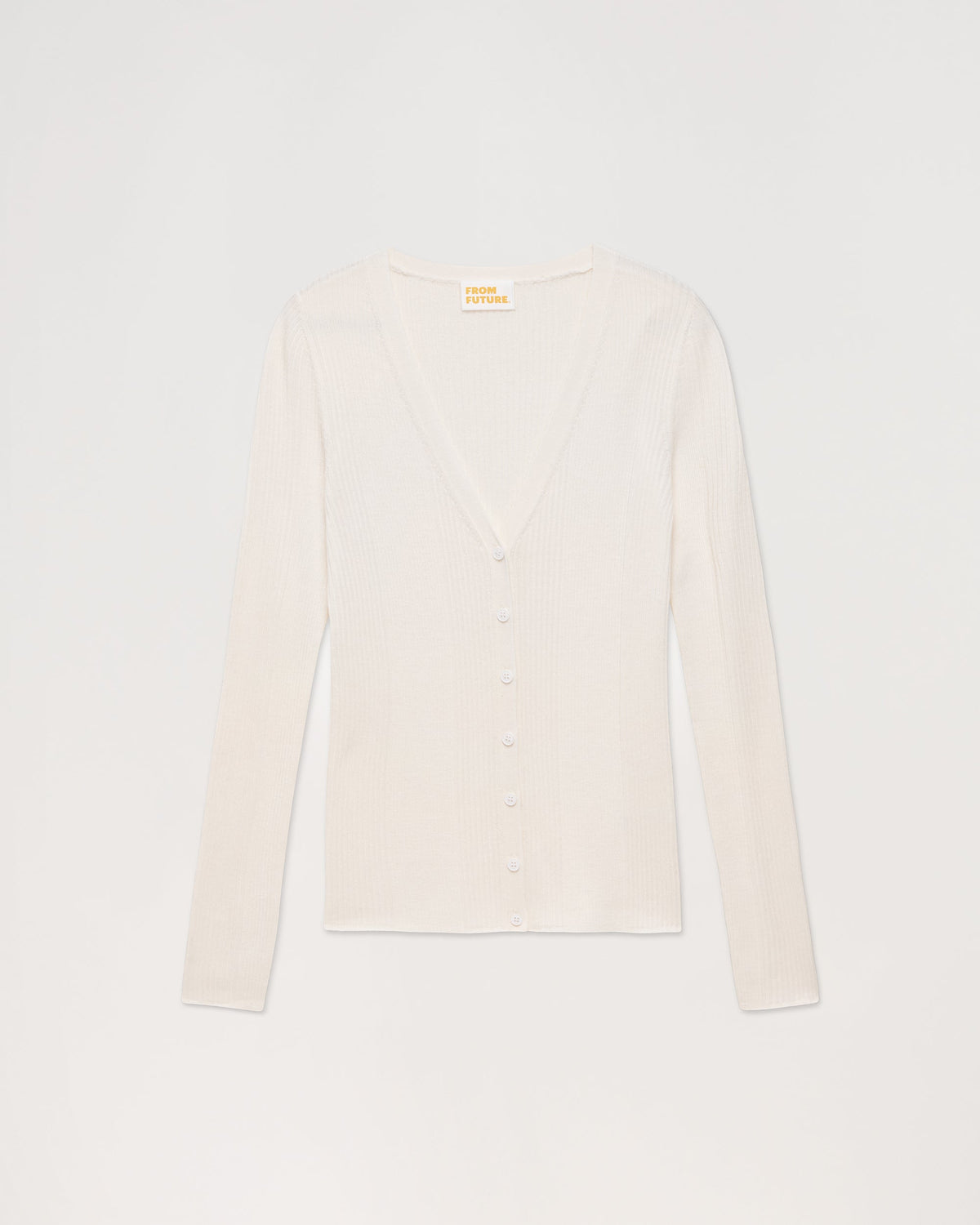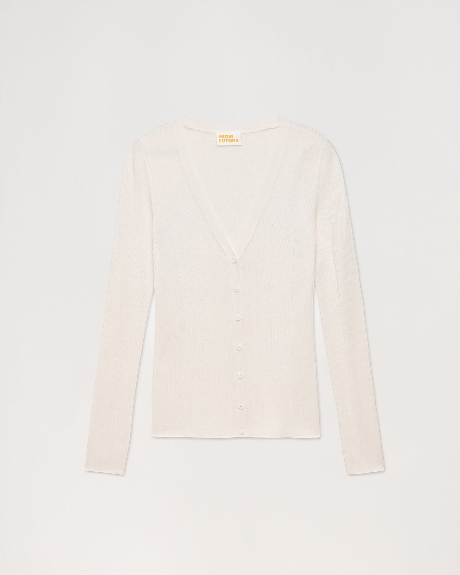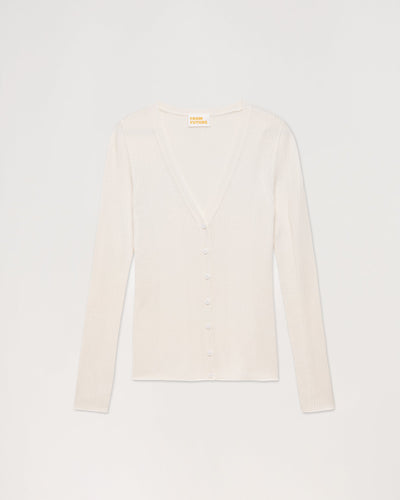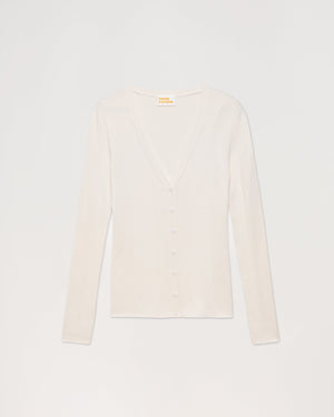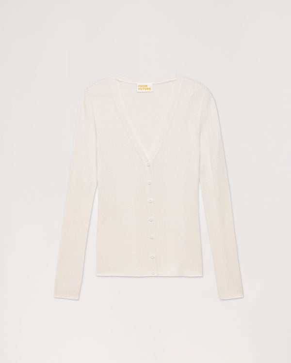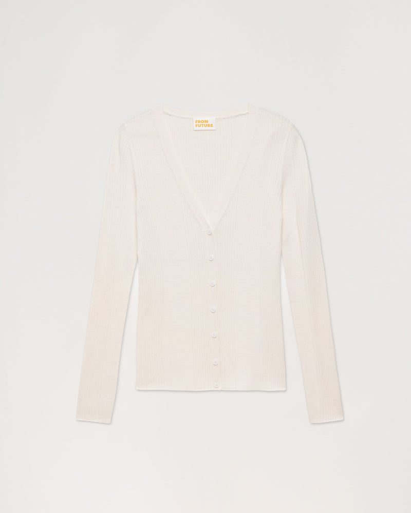 Pull Cardigan A Cotes - Laine Mérinos - Ecru