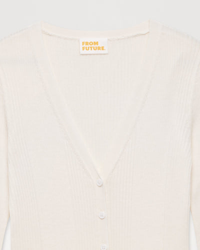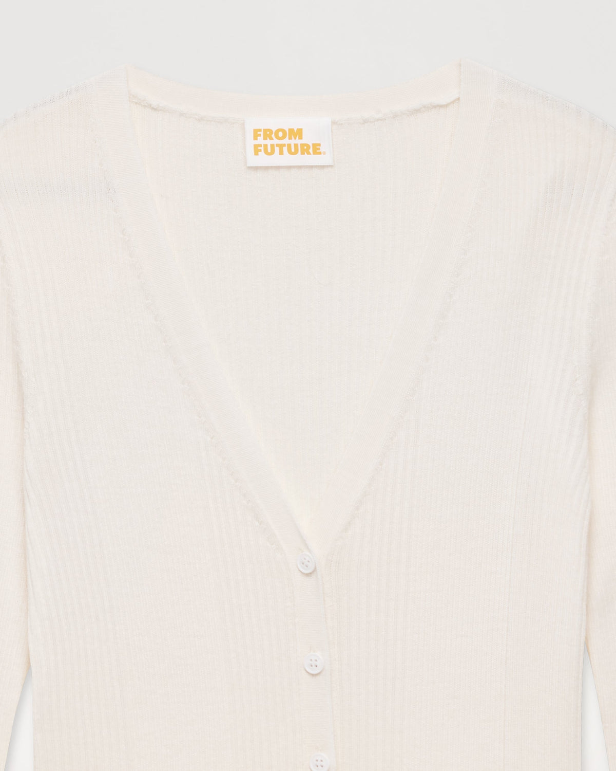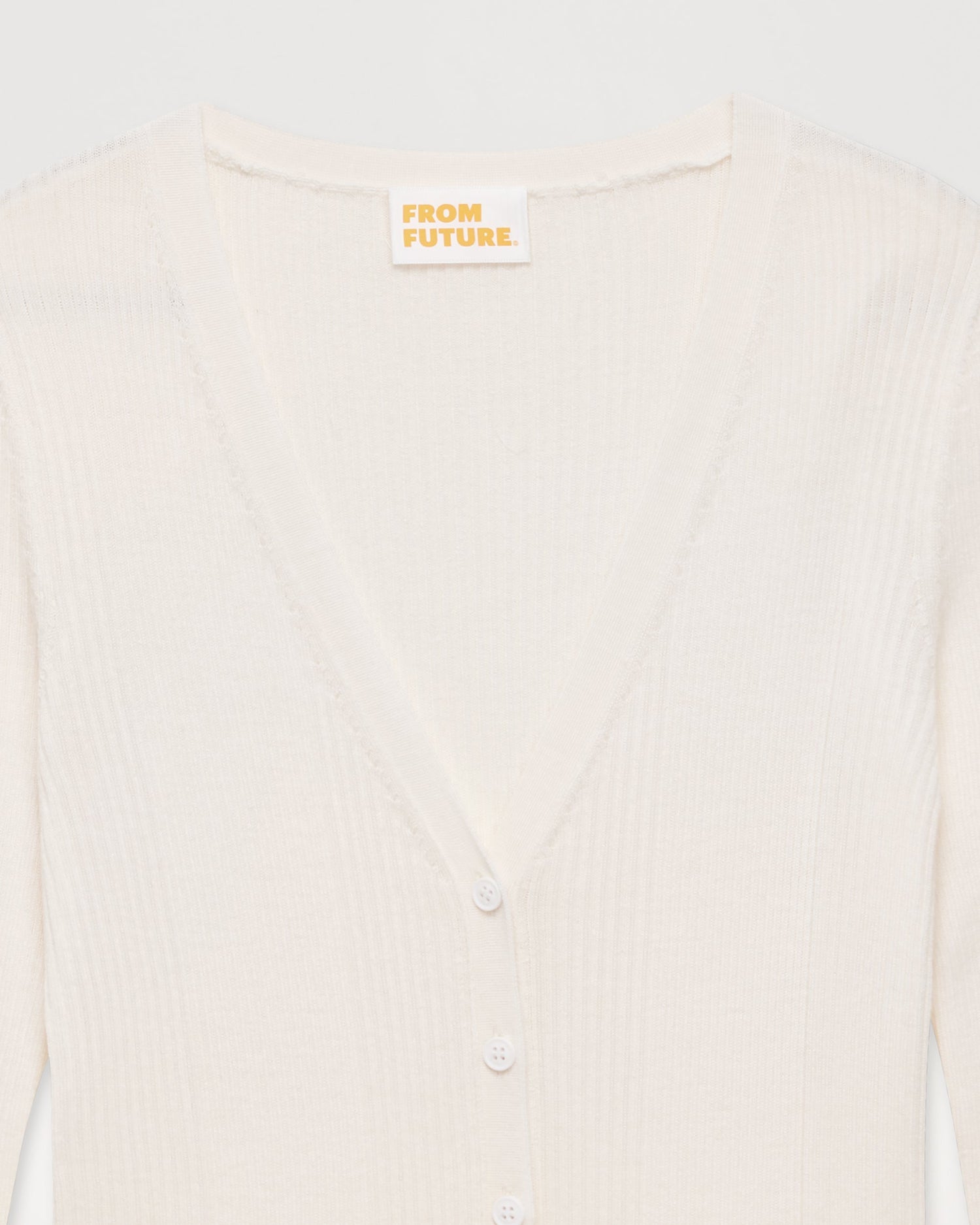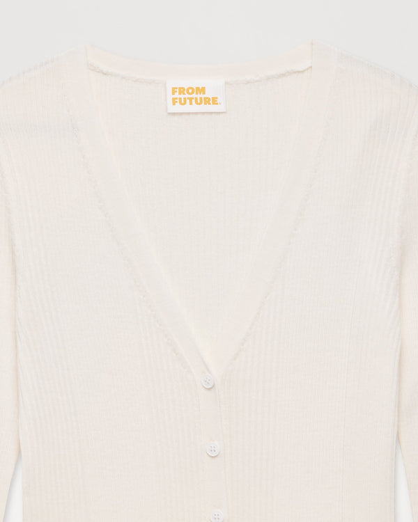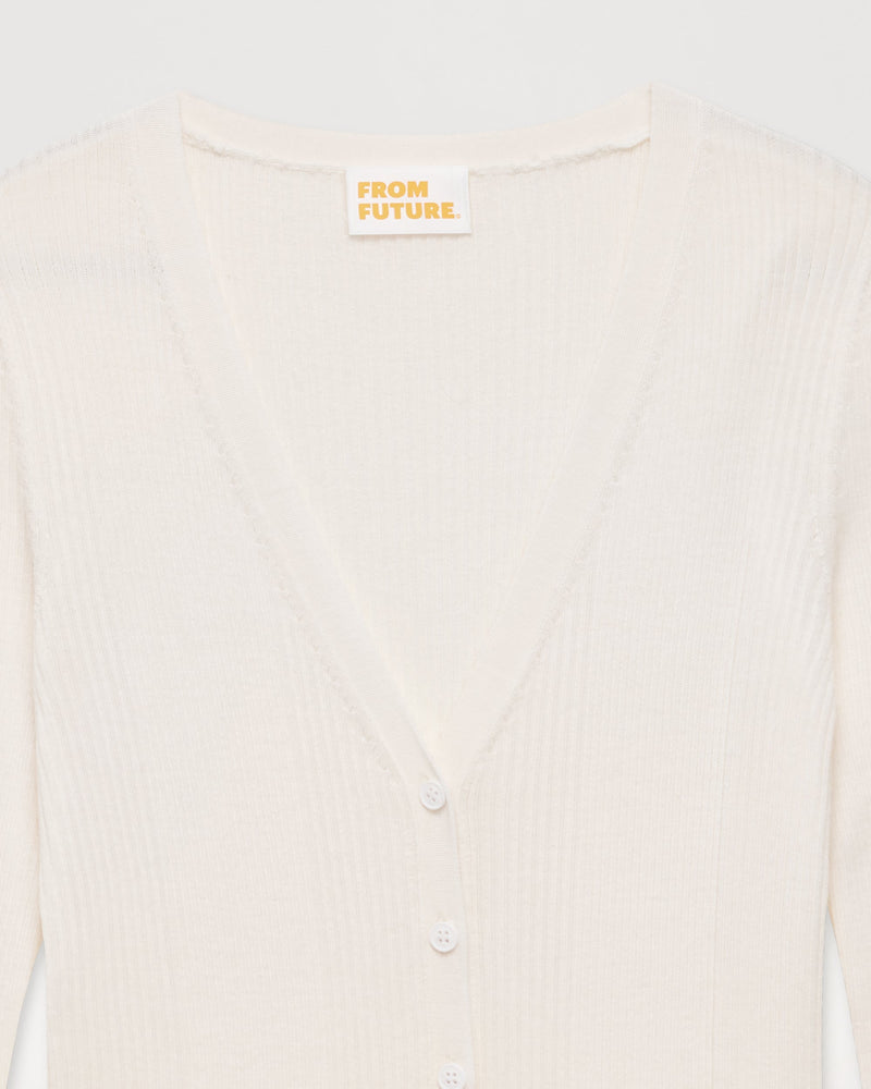 Pull Cardigan A Cotes - Laine Mérinos - Ecru