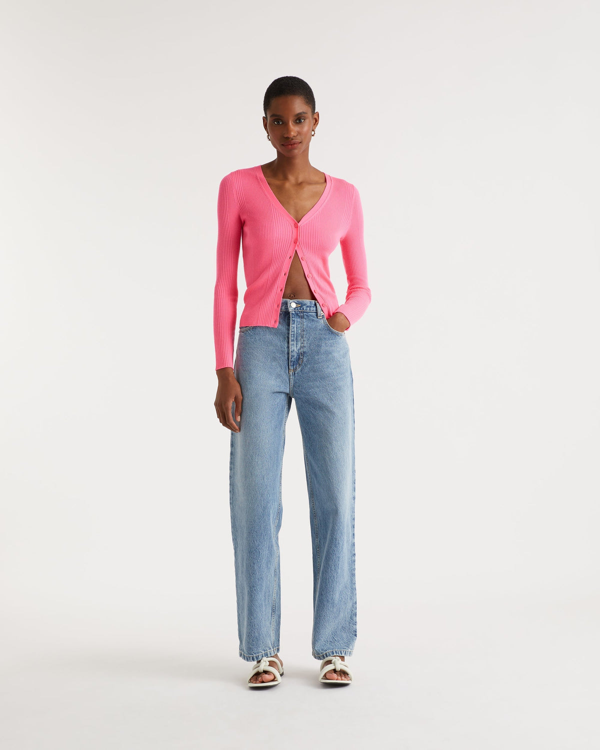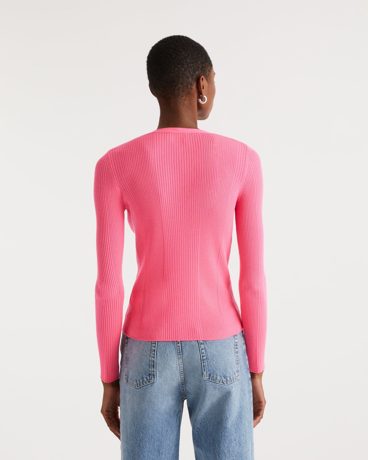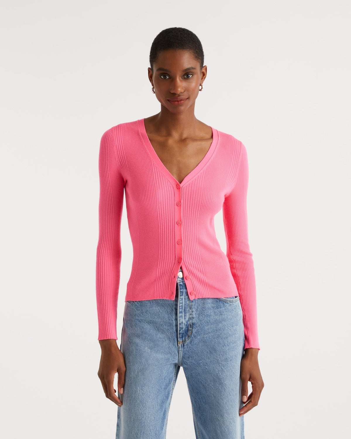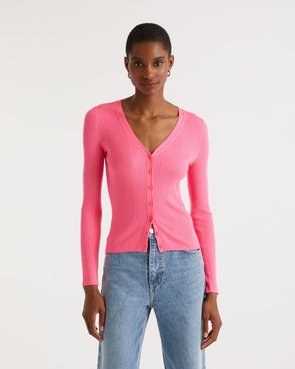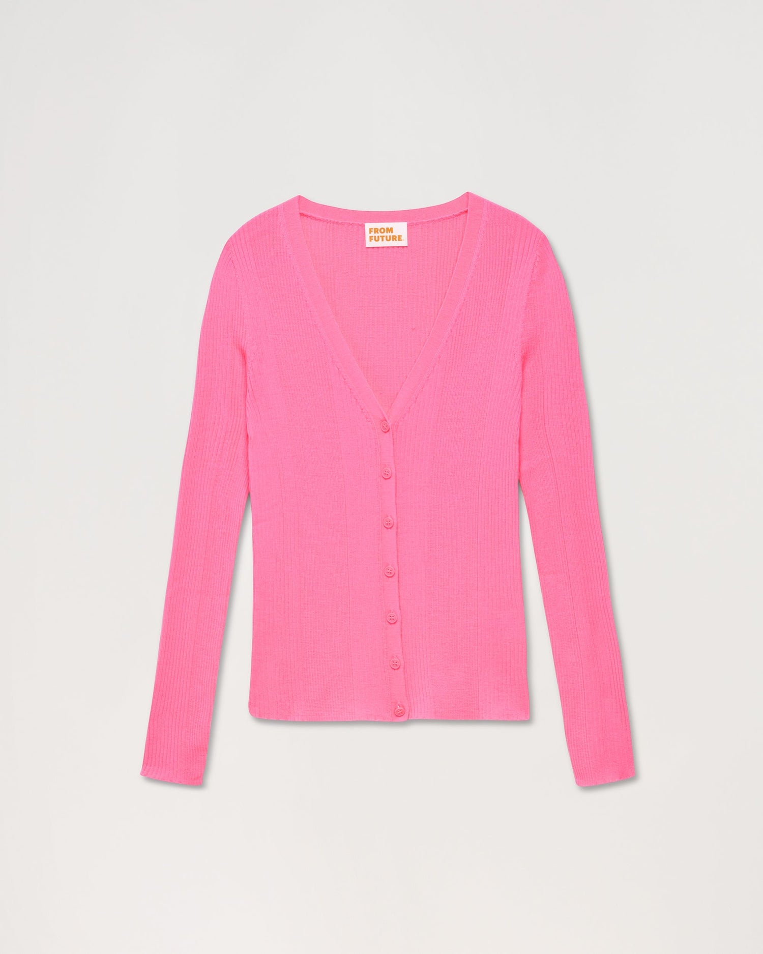 Pull Cardigan A Cotes - Laine Mérinos - Holiday pink