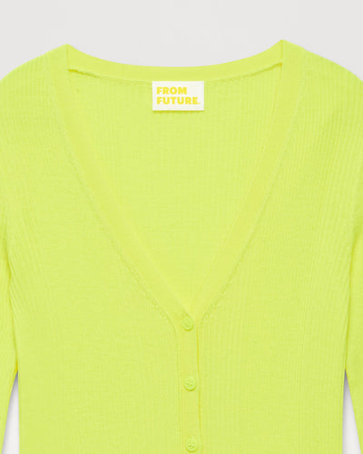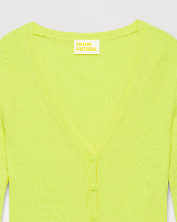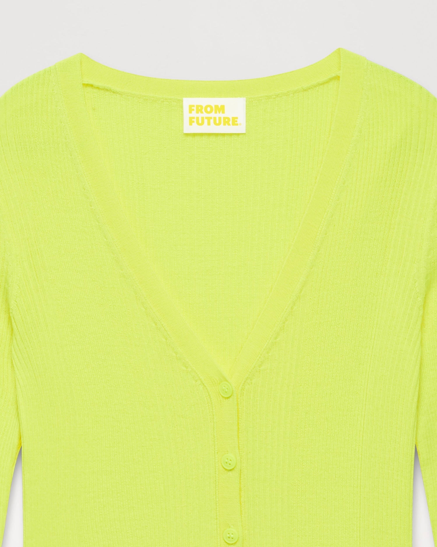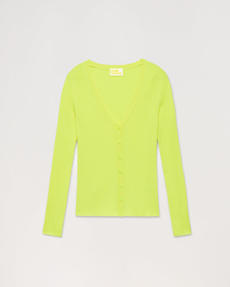 Pull Cardigan A Cotes - Laine Mérinos - Jaune fluo
