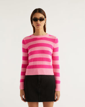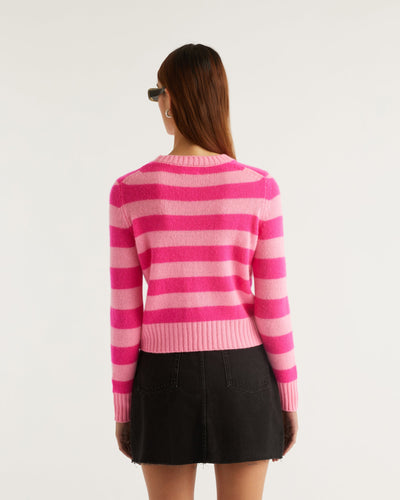 Pull Pull Col Rond à Rayures Allege - Cachemire - Flash pink