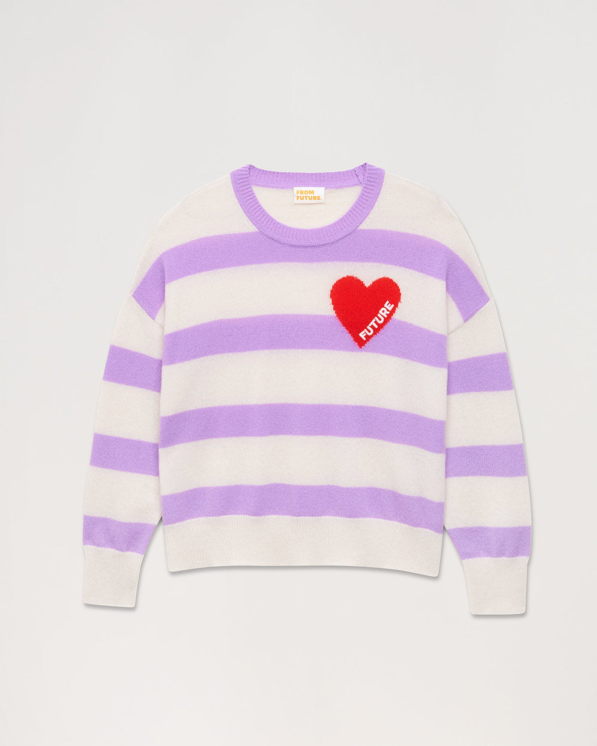 Pull Pull Col Rond A Rayures Coeur From Future - Cachemire - Holiday lilac