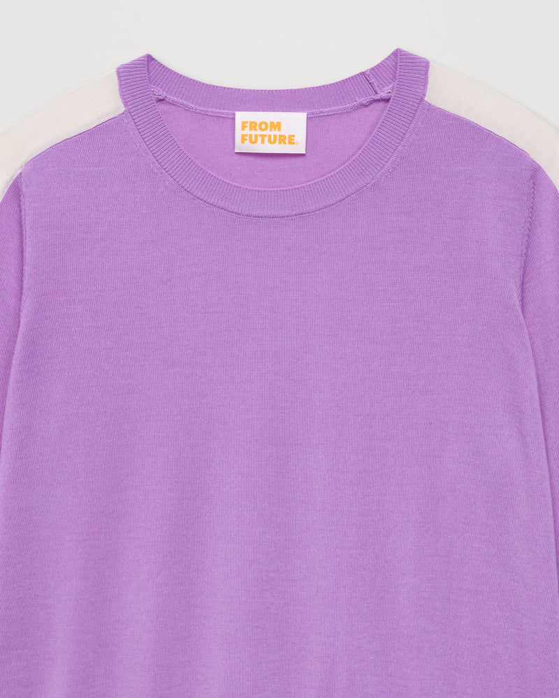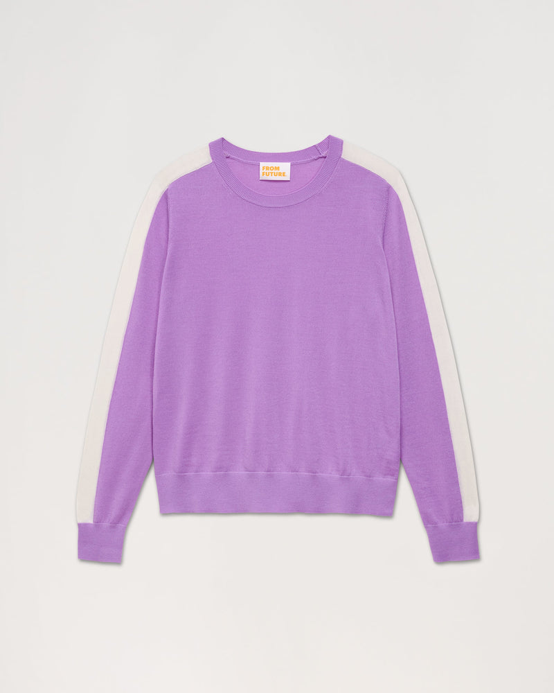 Pull Pull Col Rond Bande Aux Manches - Laine Mérinos - Holiday lilac