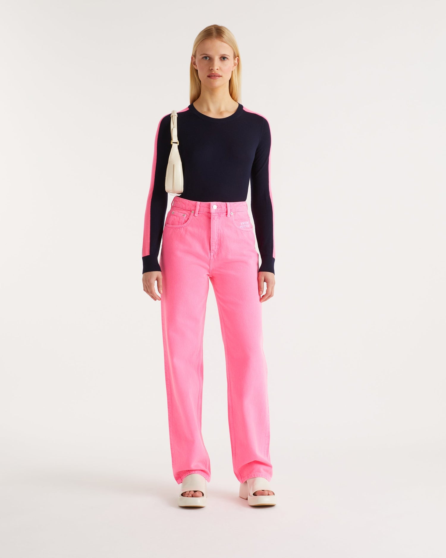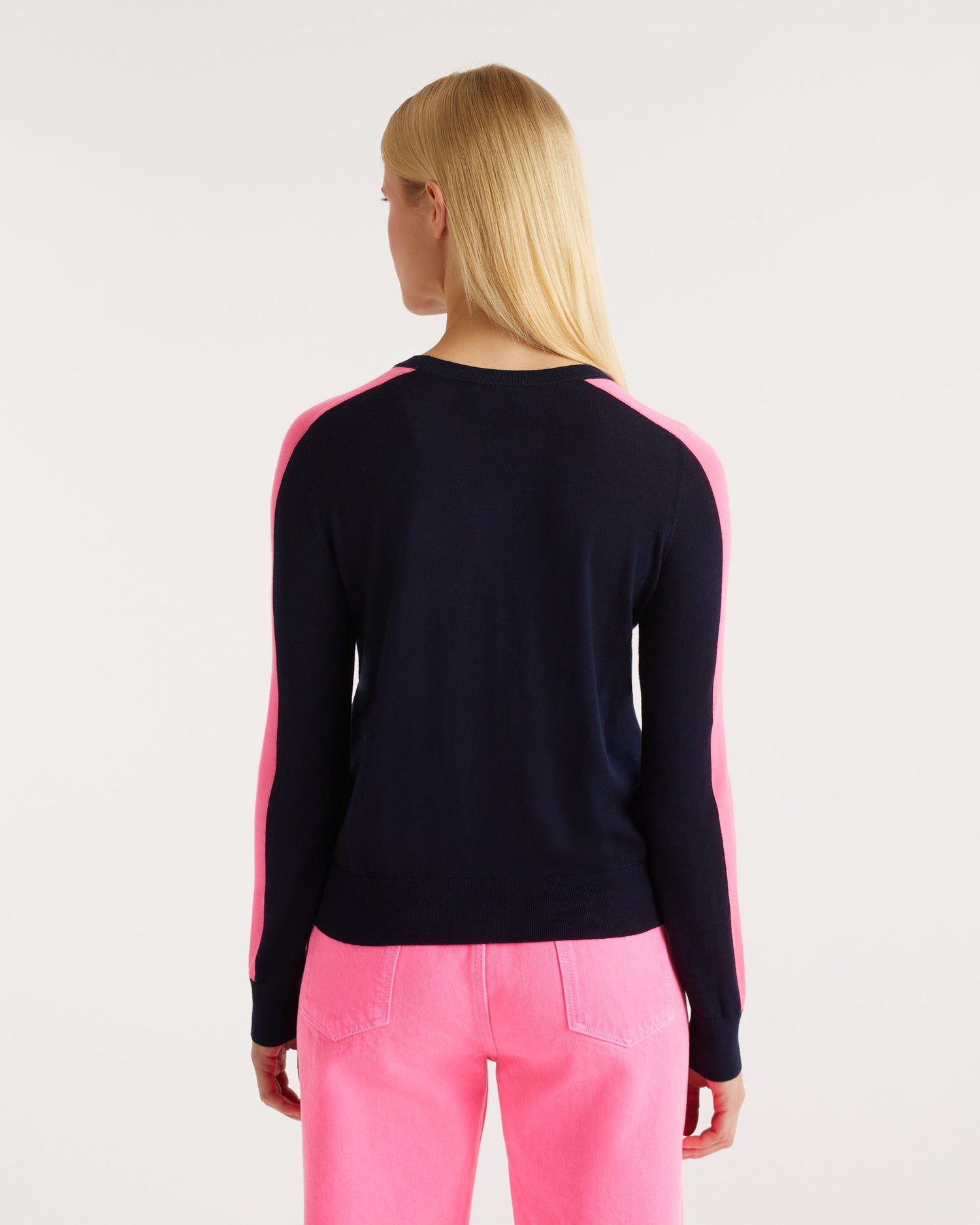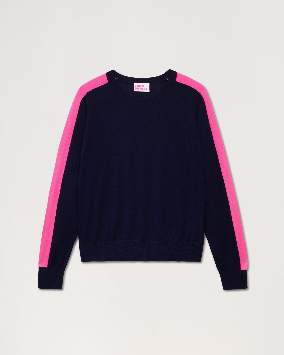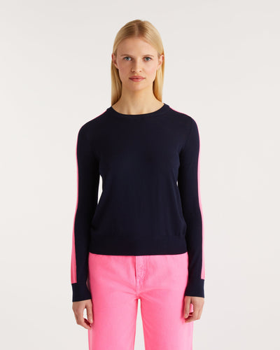 Pull Pull Col Rond Bande Aux Manches - Laine Mérinos - Navy