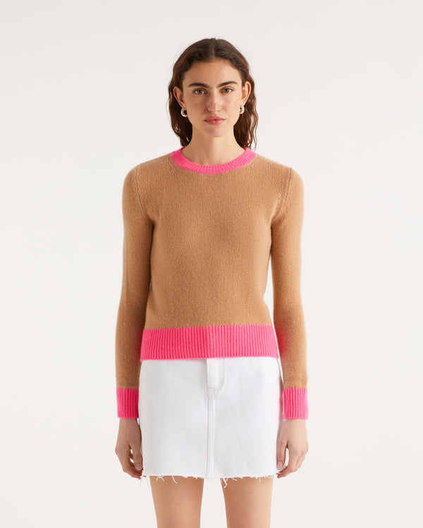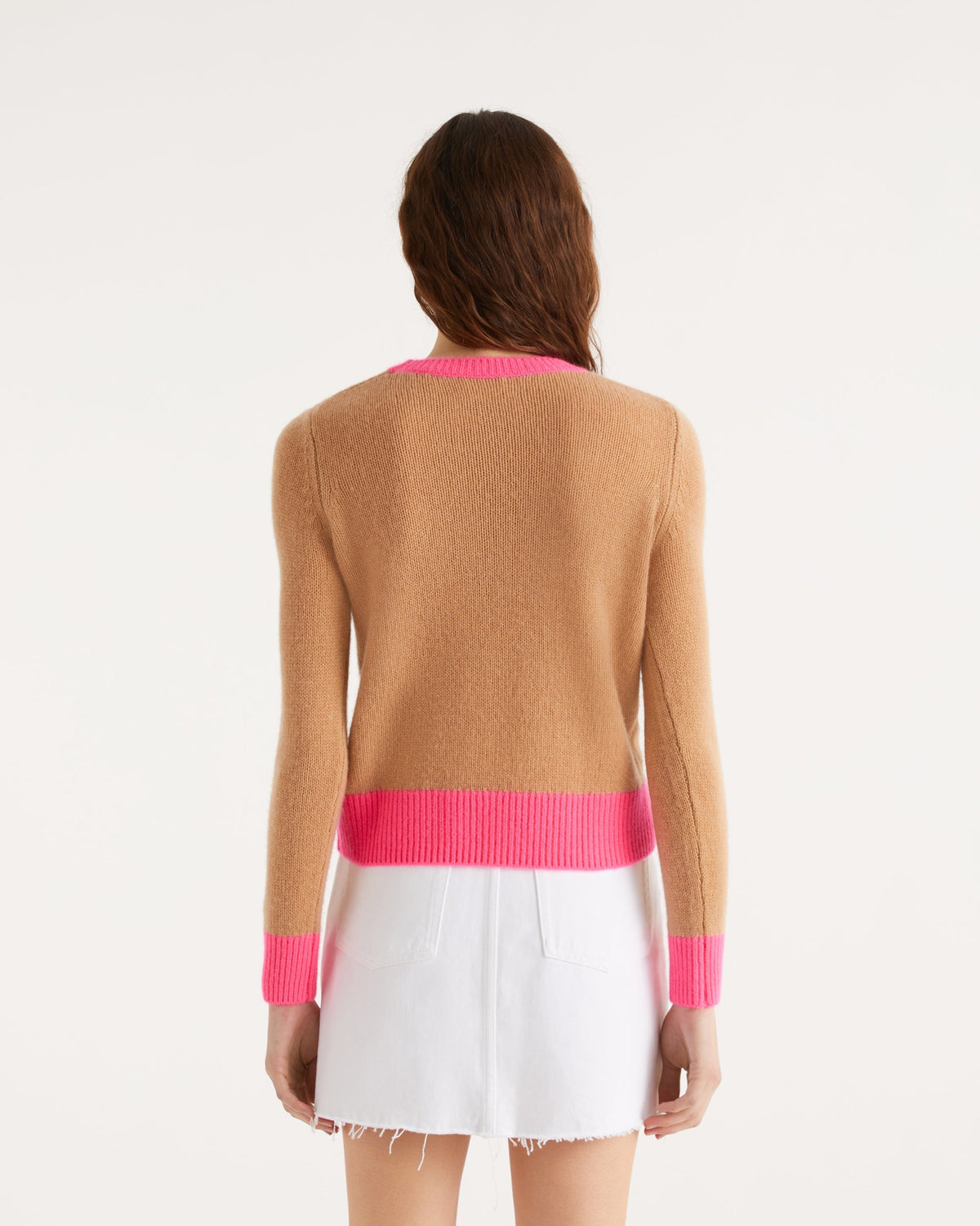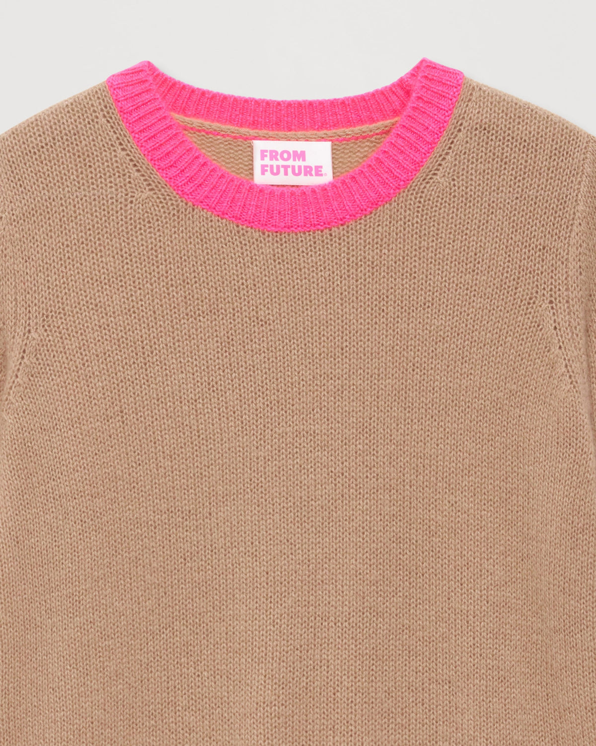 Pull Pull Col Rond Bord-Cotes Contrastes Allege - Cachemire - Summer camel