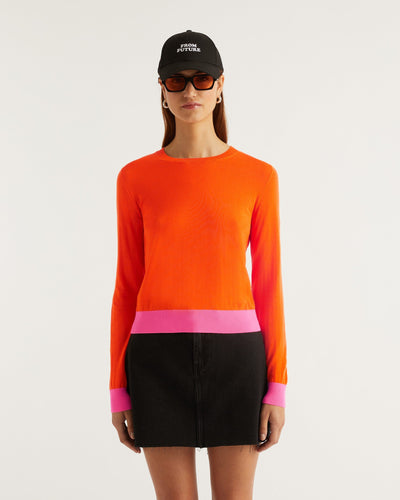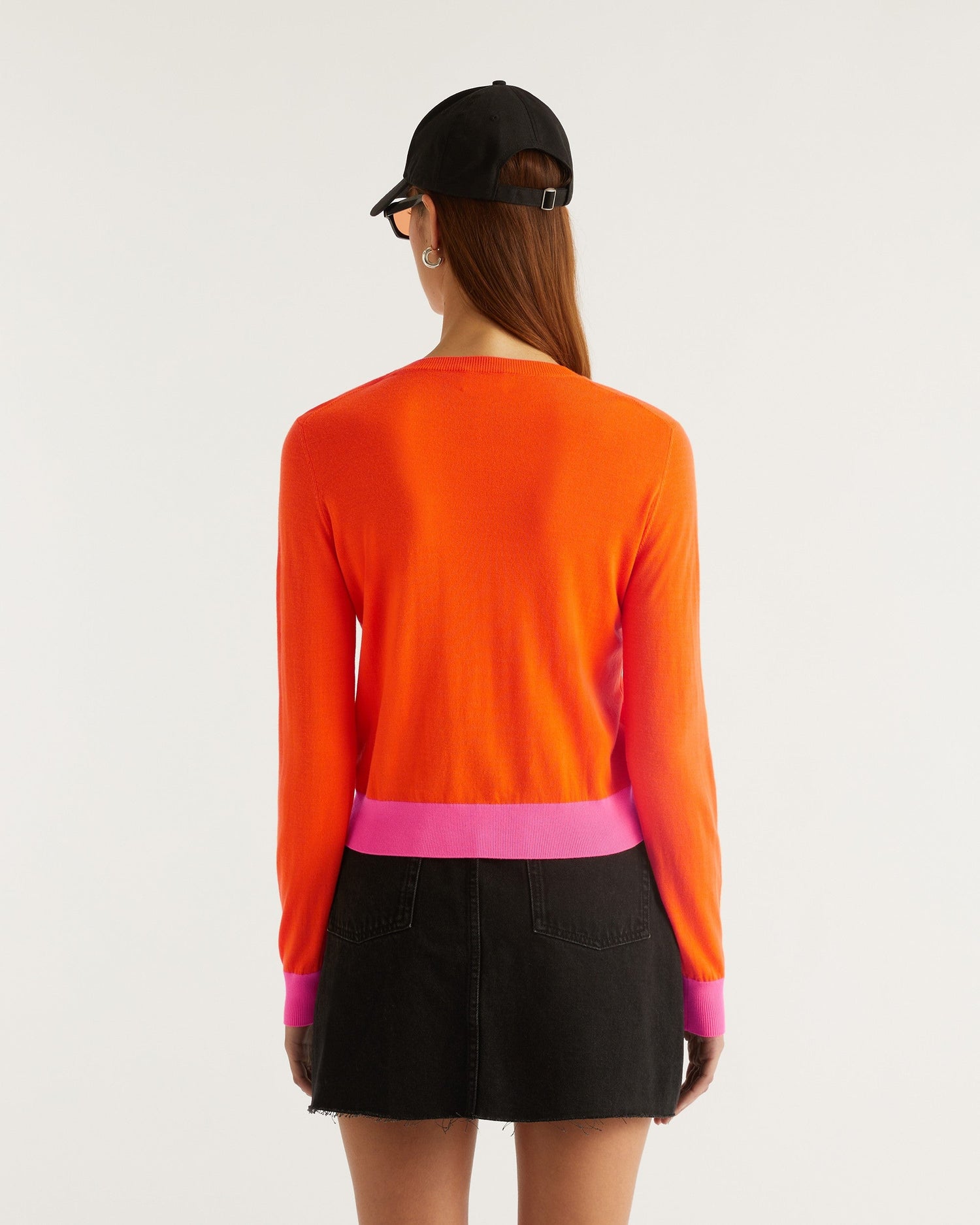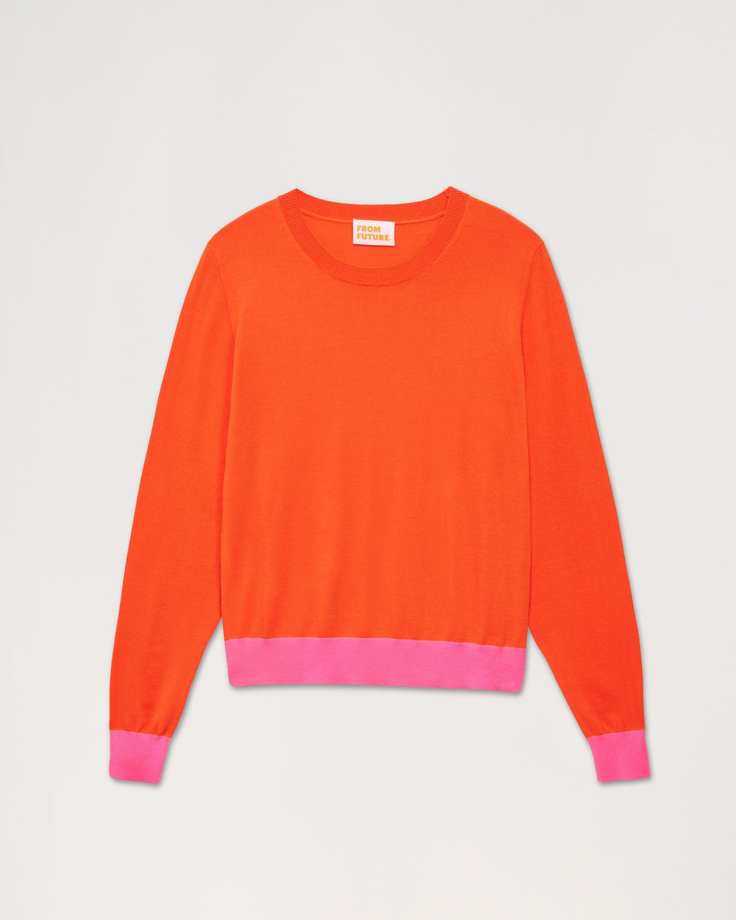 Pull Pull Col Rond Bord-Côtes Contrastes - Laine Mérinos - Beach orange