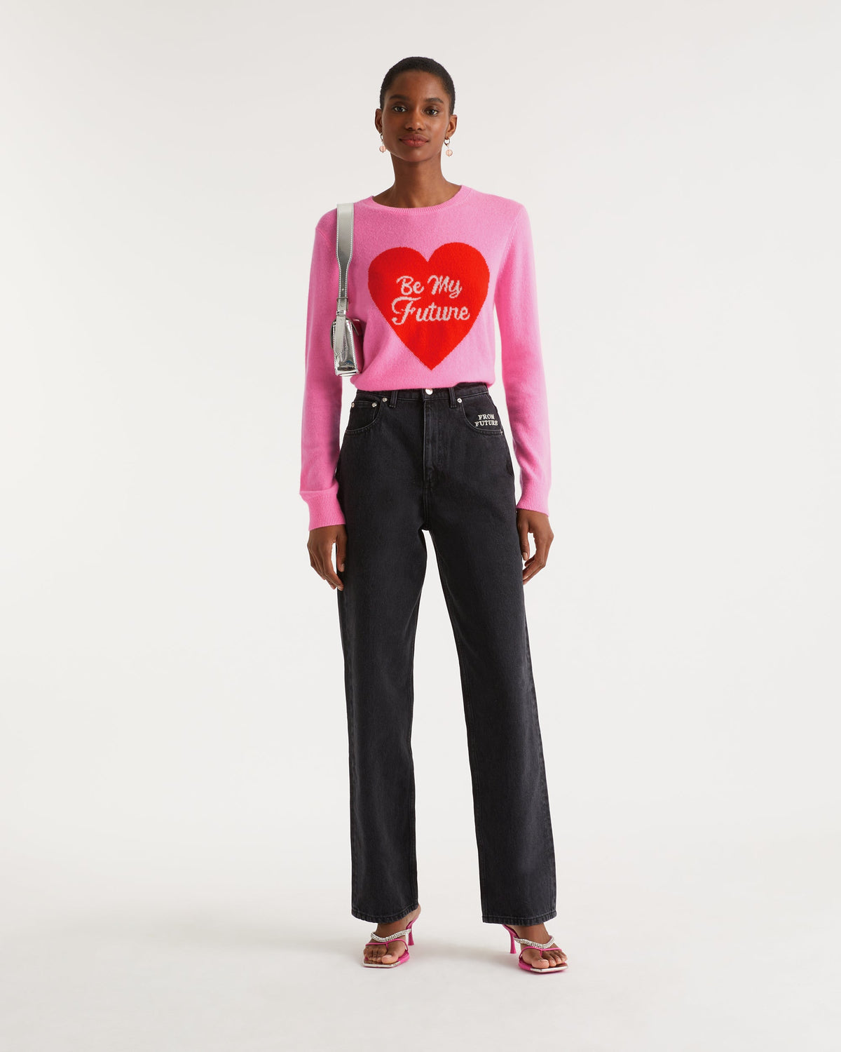 Pull Pull Col Rond Coeur Be My Future Light - Cachemire - Party pink