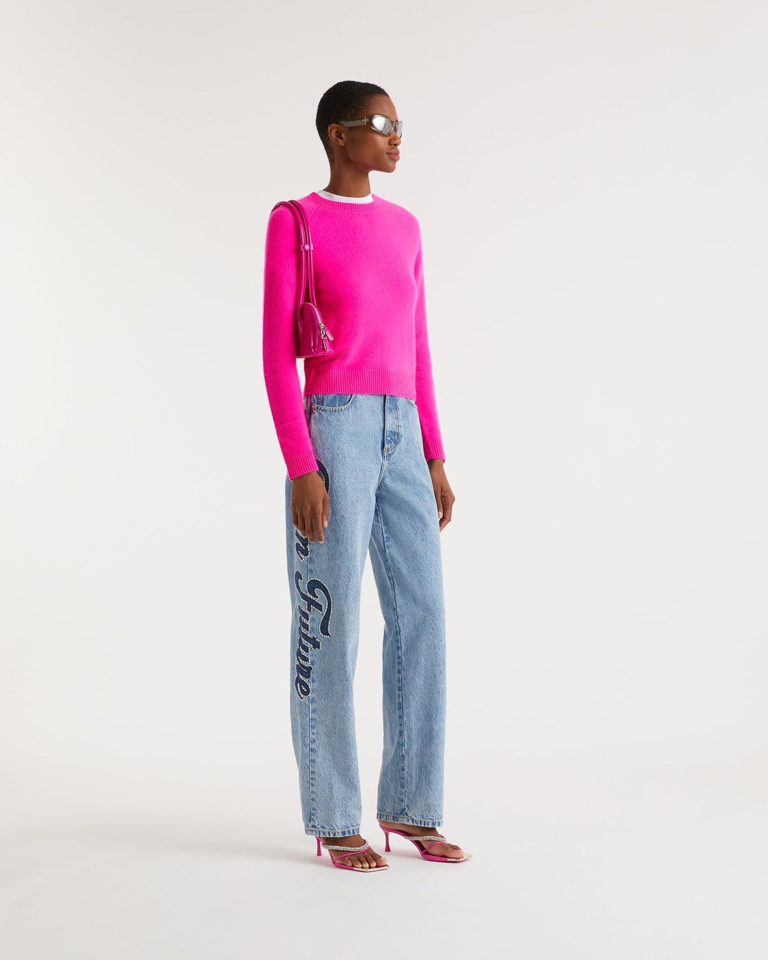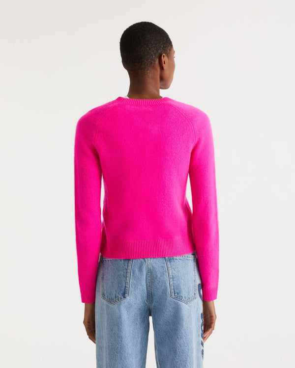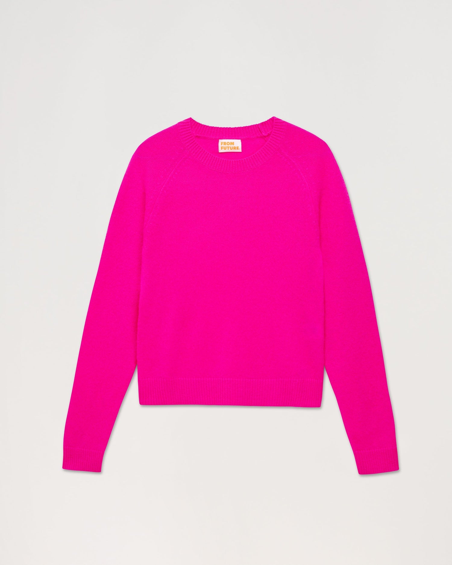 Pull Pull Col Rond Manches Raglan Light - Cachemire - Flash pink