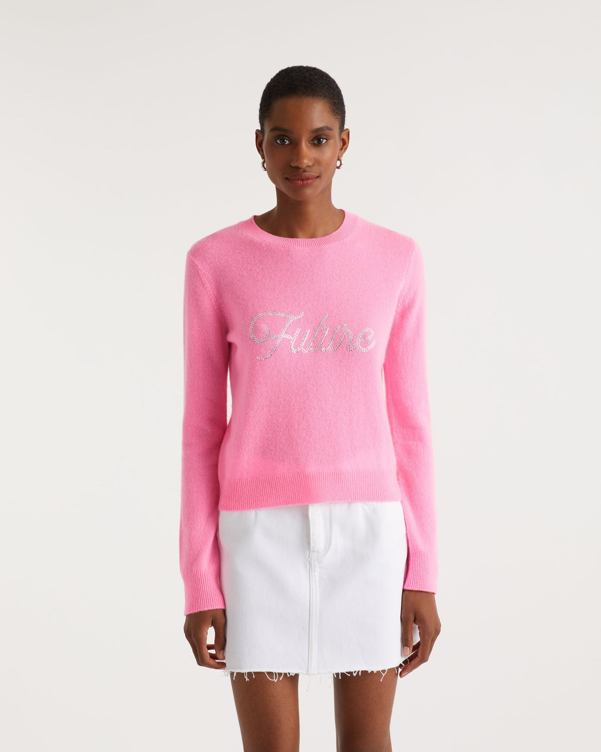 Pull Pull Col Rond Strass - Cachemire - Party pink