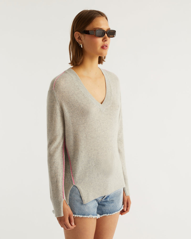 Pull Col V Coutures Contrastees Light