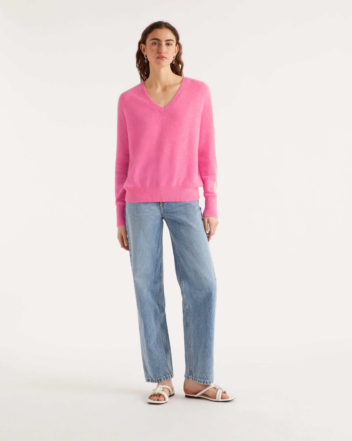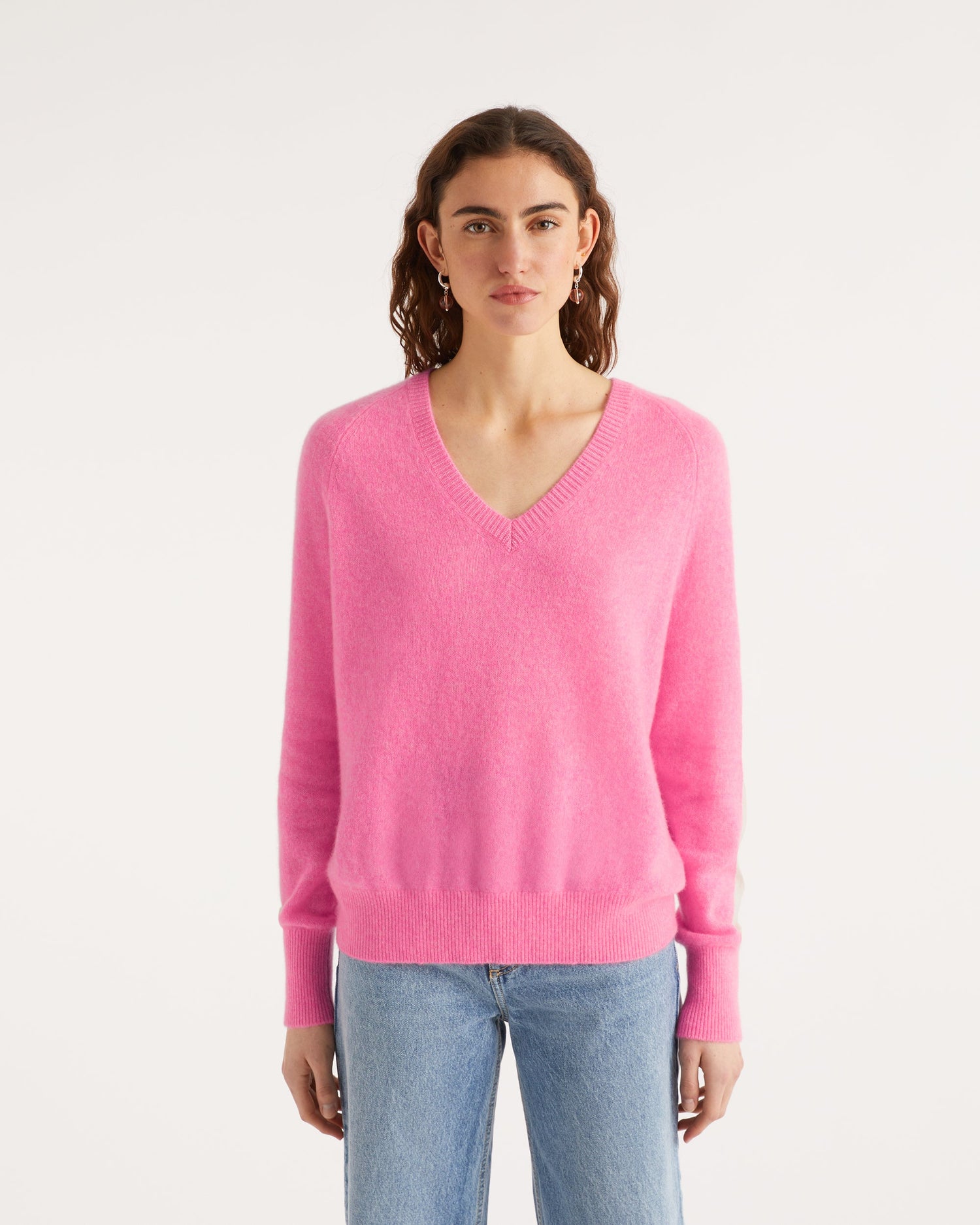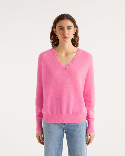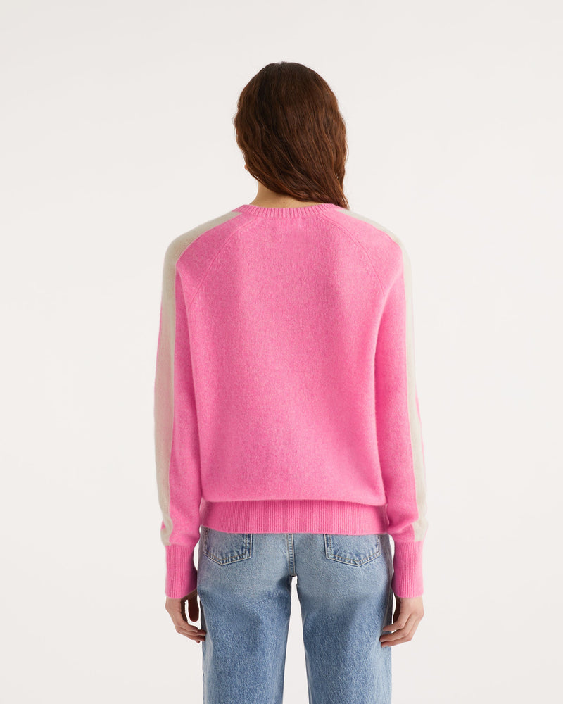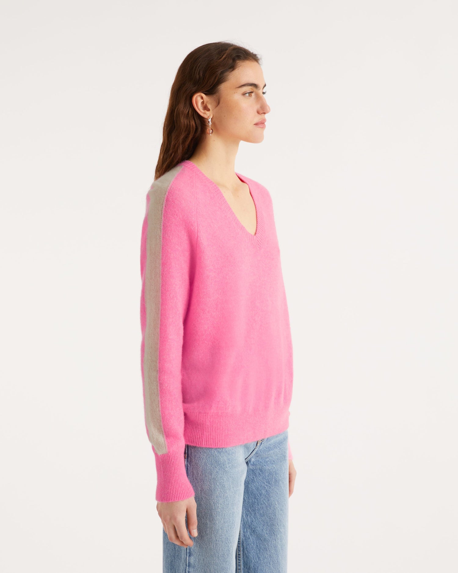 Pull Pull Col V Oversize Bande Manches Light - Cachemire - Sunset pink
