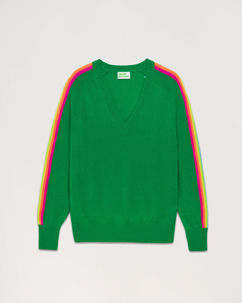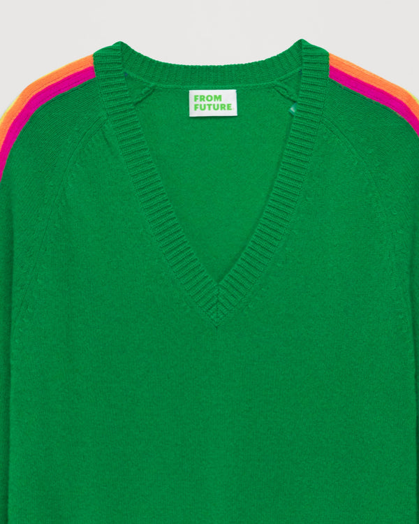Pull Pull Col V Oversize Bande Manches Multico - Cachemire - Summer green