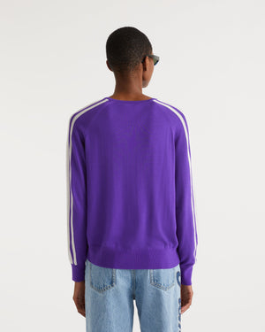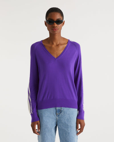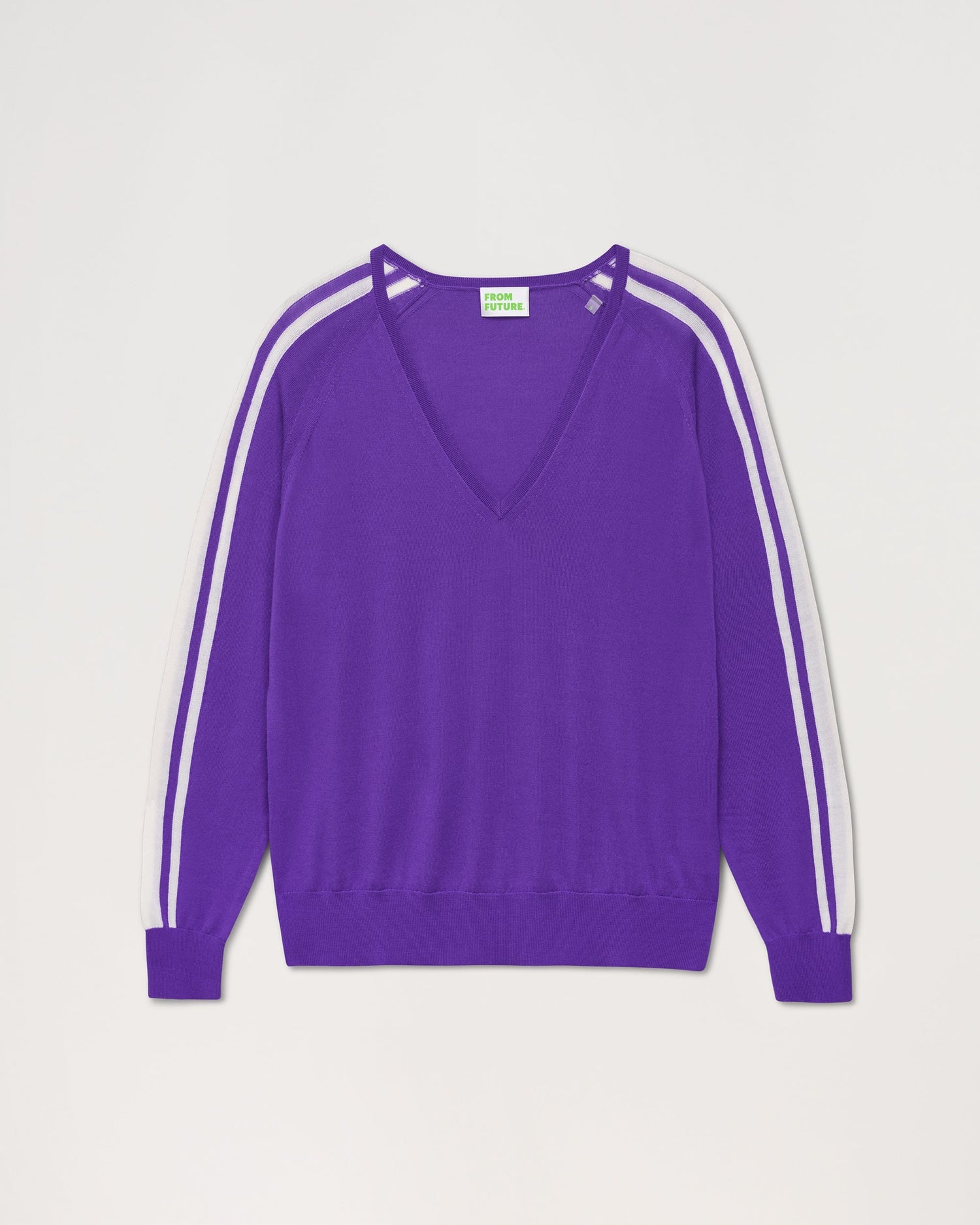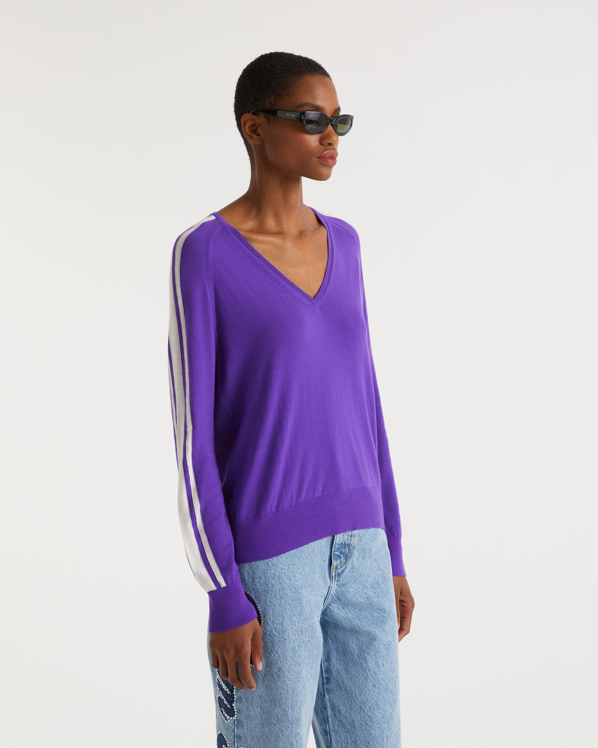 Pull Pull Col V Oversize Bandes Manches - Laine Mérinos - Violet fluo