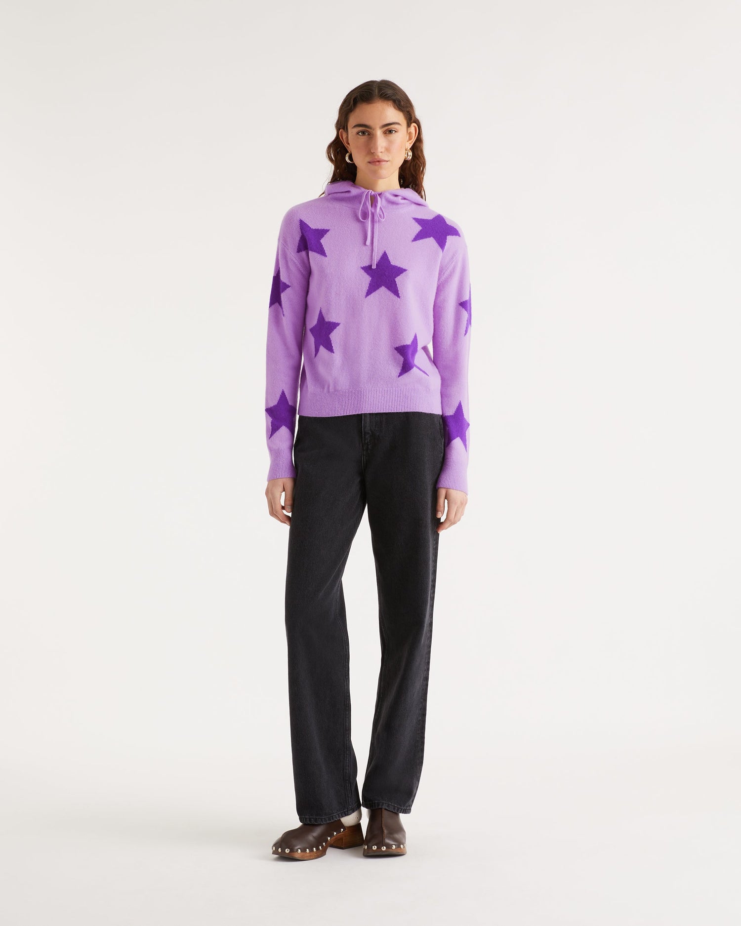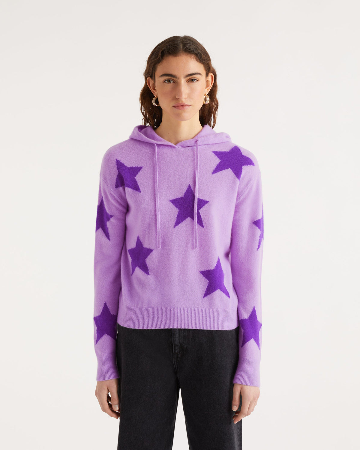 Pull Hoodie Oversize Etoiles Allover - Cachemire - Holiday lilac