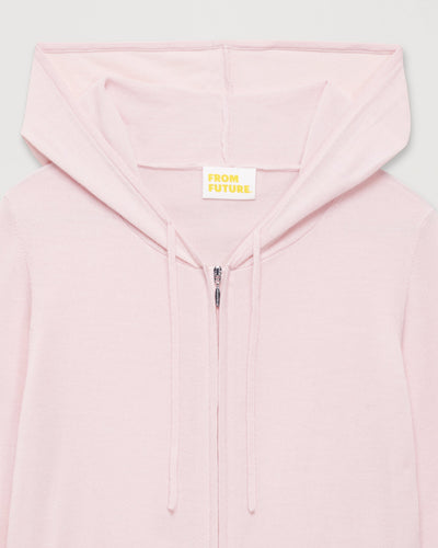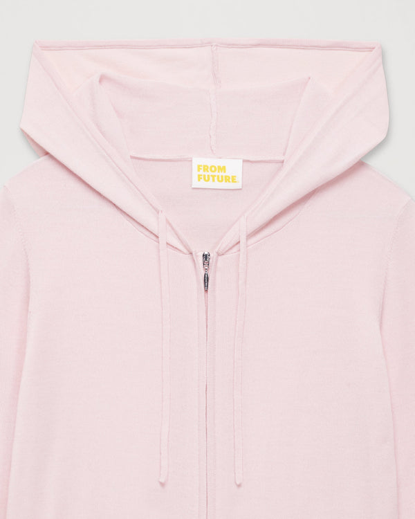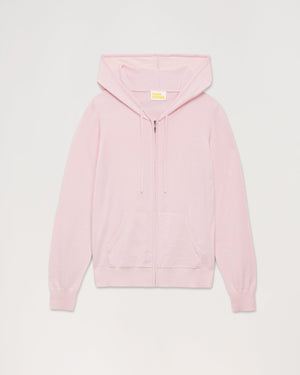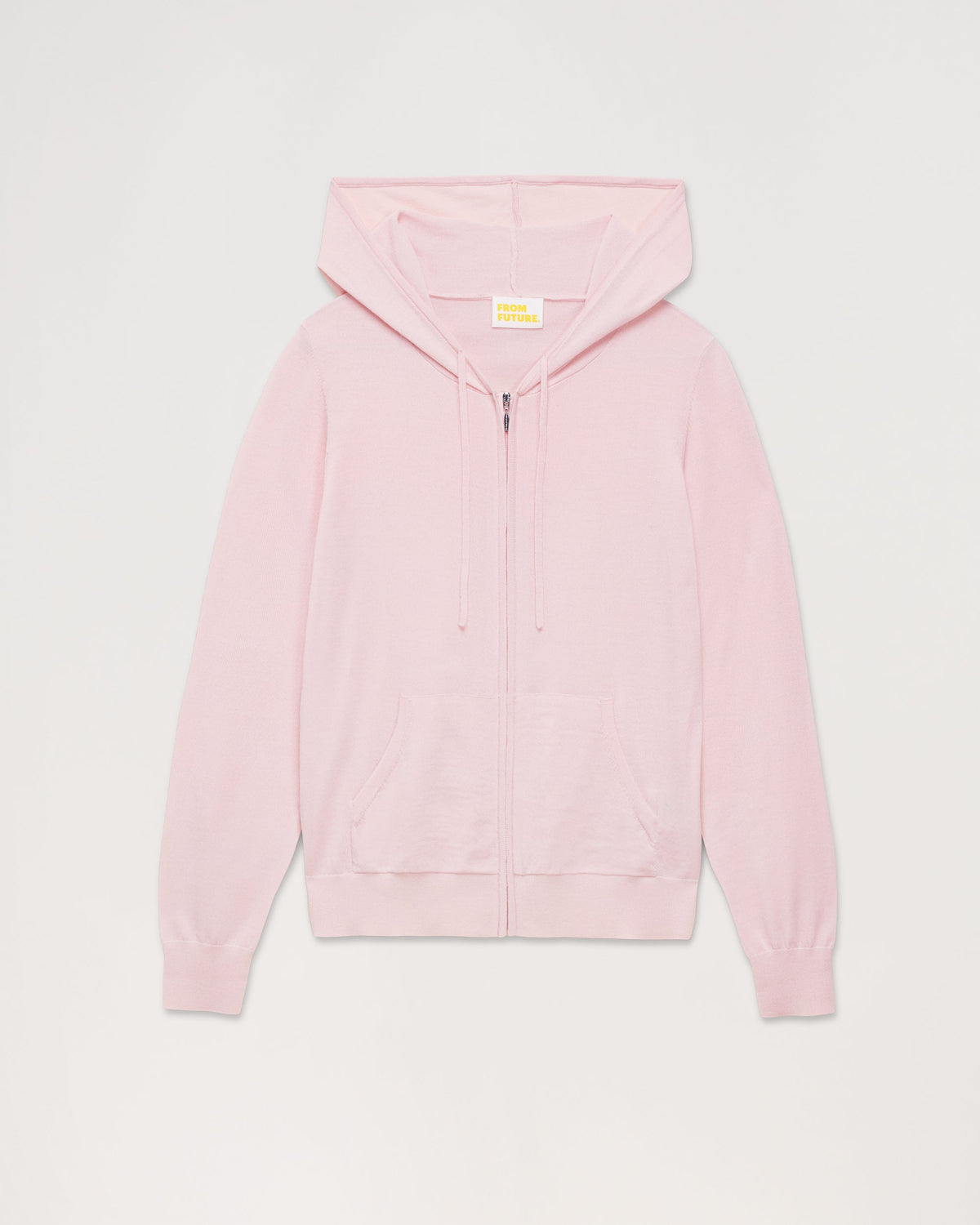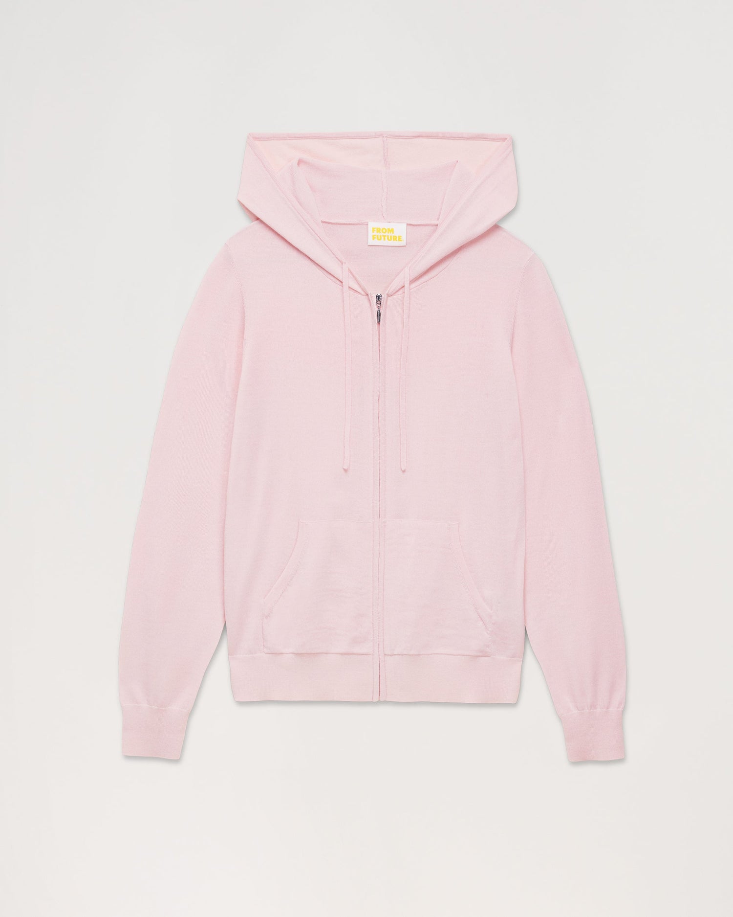 Pull Hoodie Zippe - Laine Mérinos - Rose poudre