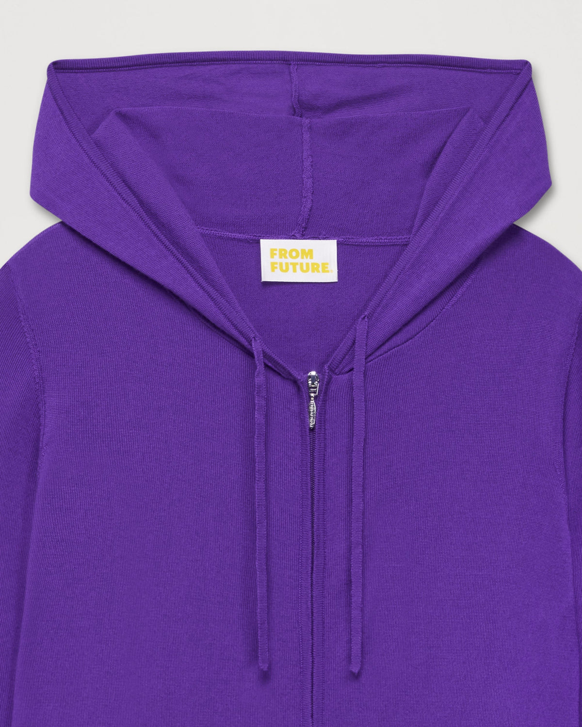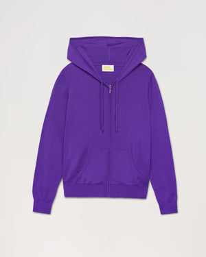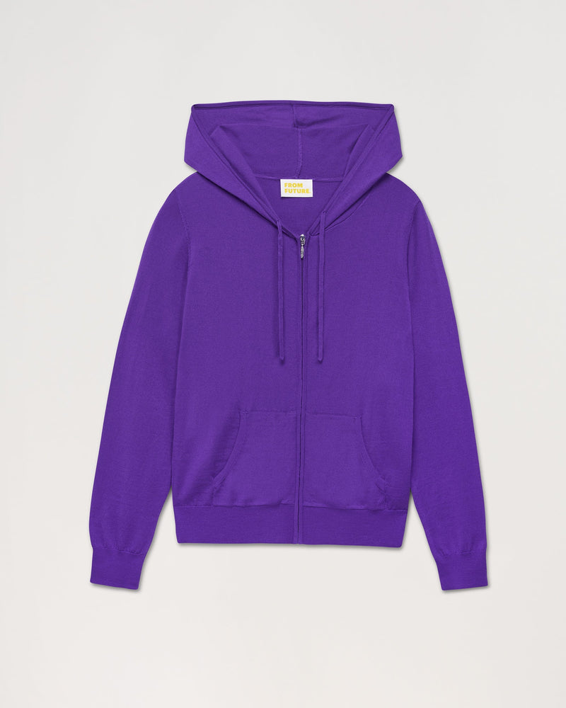 Pull Hoodie Zippe - Laine Mérinos - Violet fluo