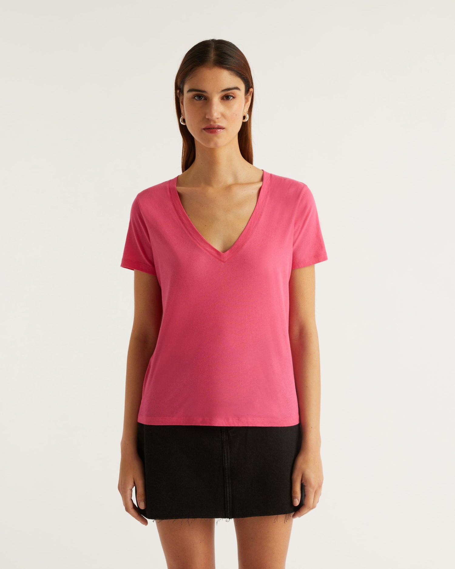 Pull T-Shirt Col V Supima - Coton - Holyday pink