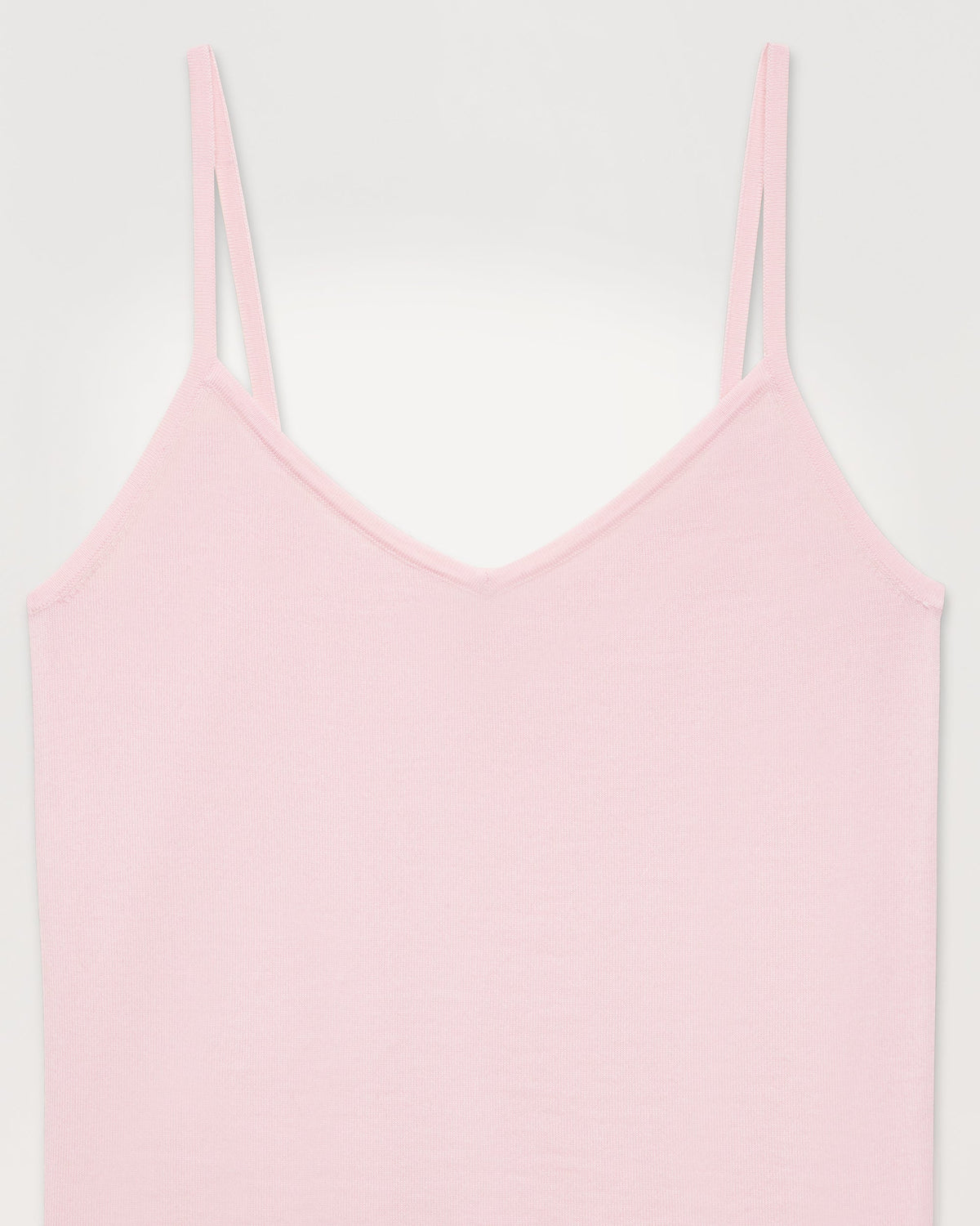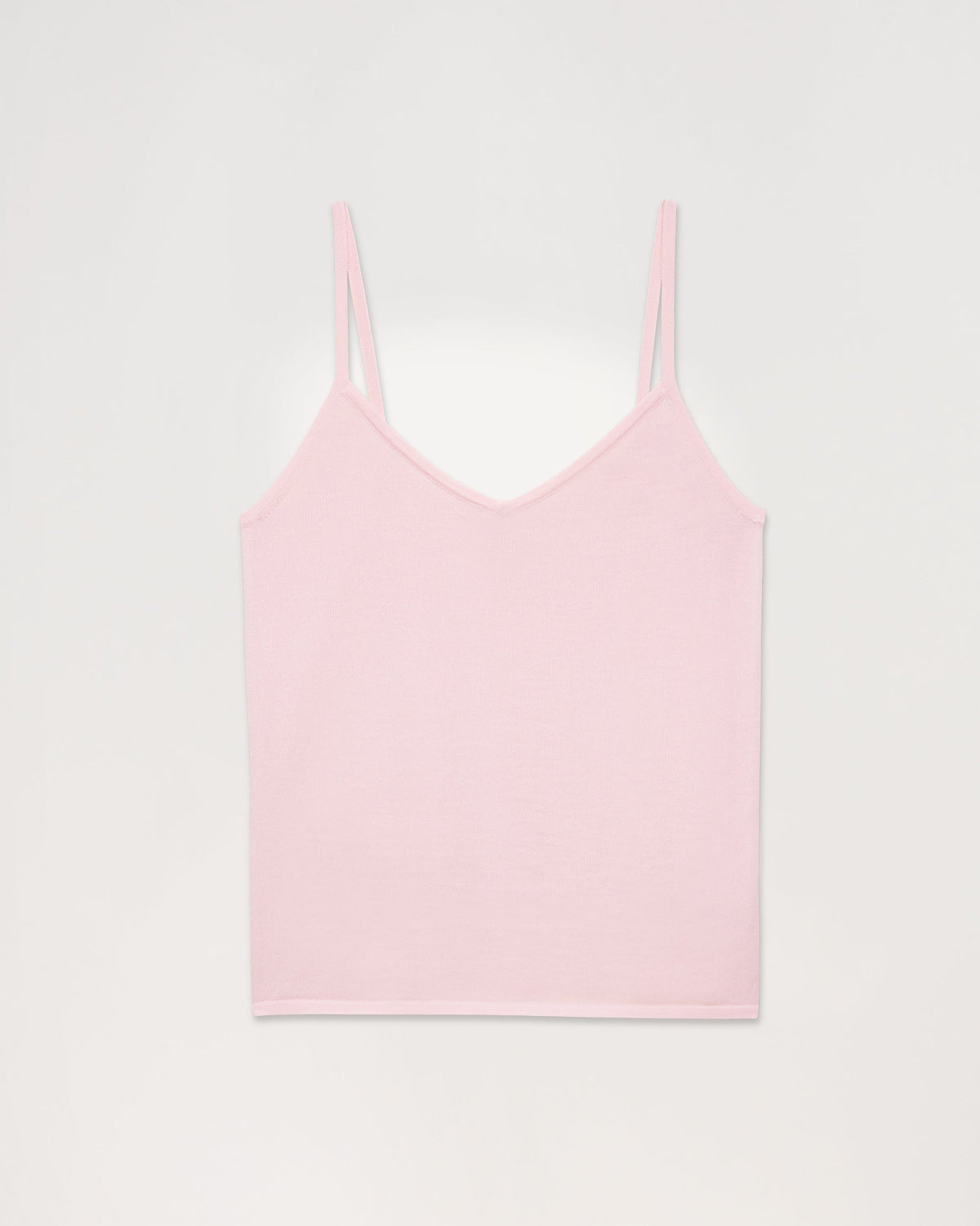 Pull Top Debardeur Col V Uni - Laine Mérinos - Rose poudre