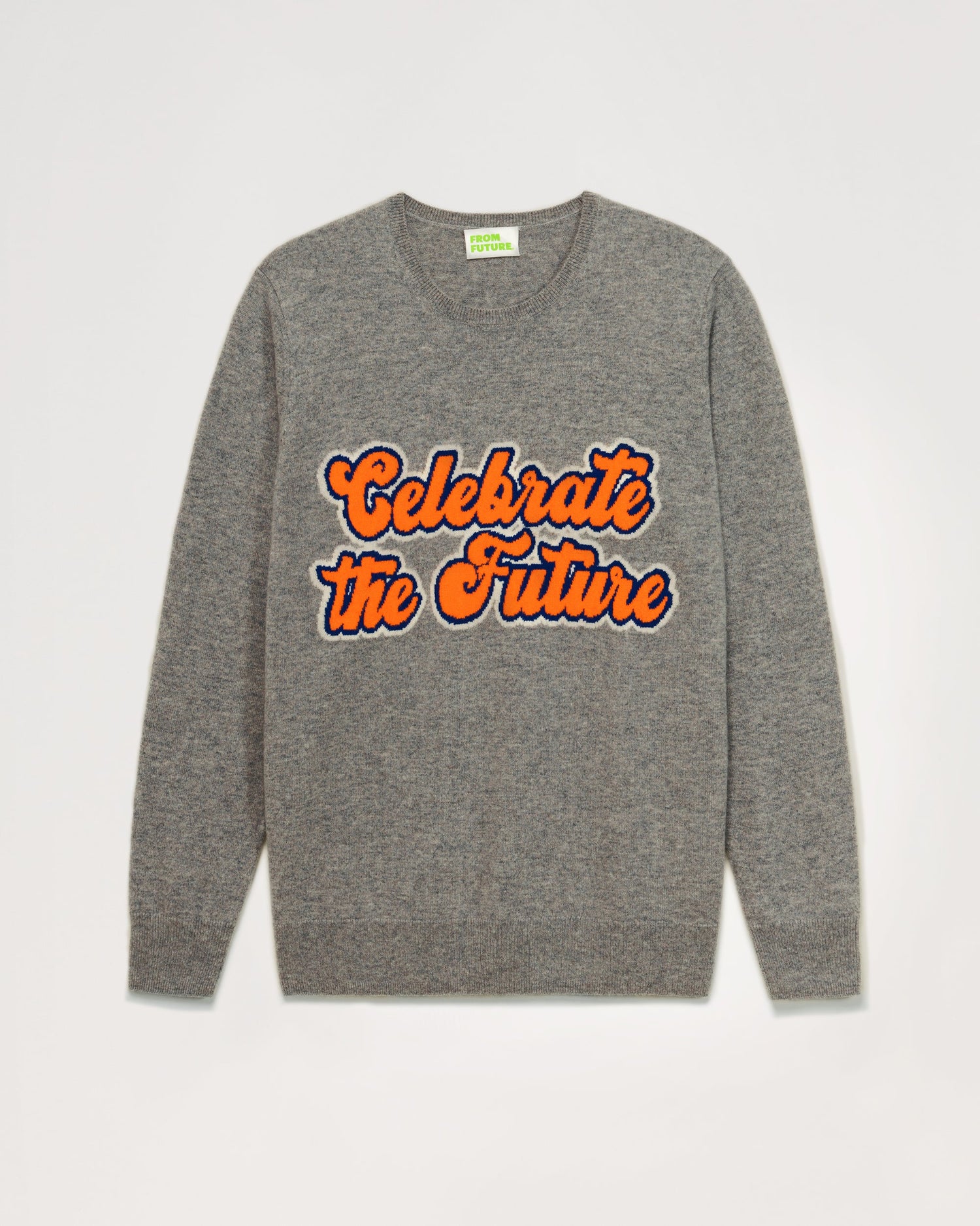 Pull Col Rond Celebrate Your Future 2 Fils - 100% Cachemire - Gris chine fonc