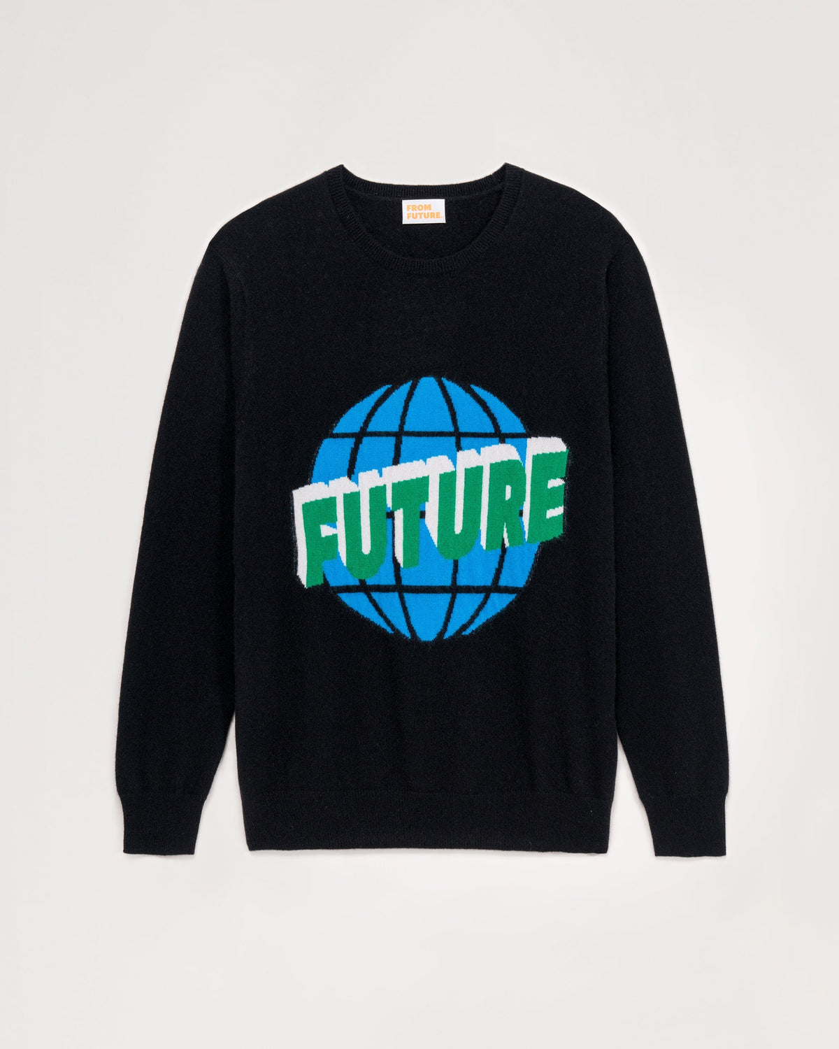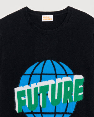 Pull Col Rond Future Globe 2 Fils - 100% Cachemire - Noir