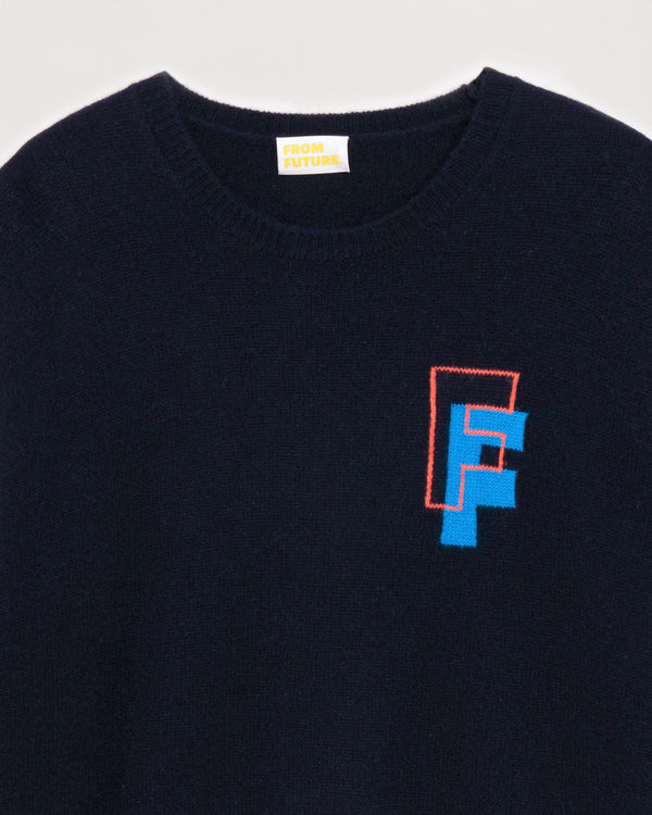 Pull Col Rond Oversize Ff 4 Fils - 100% Cachemire - Navy