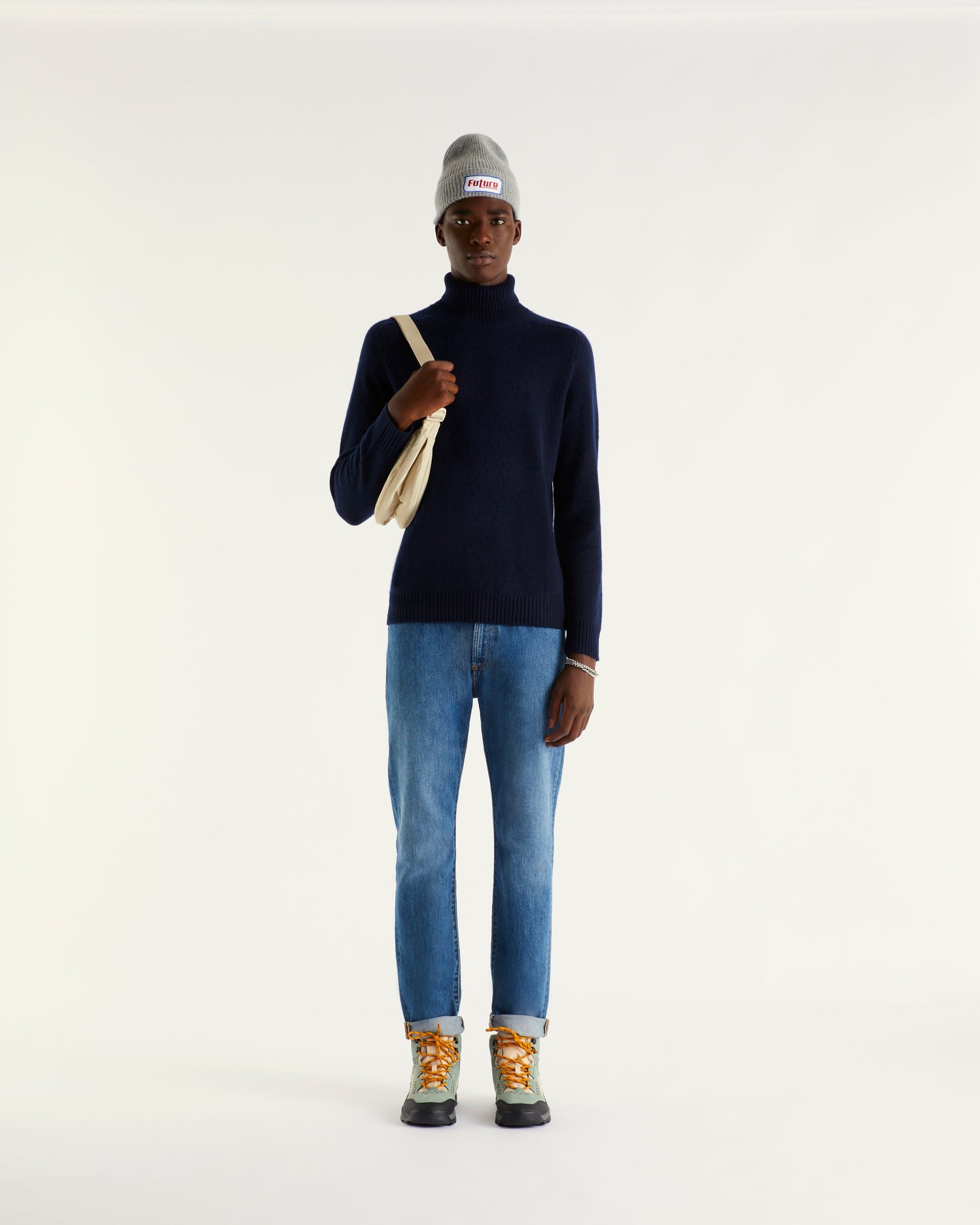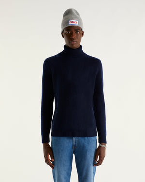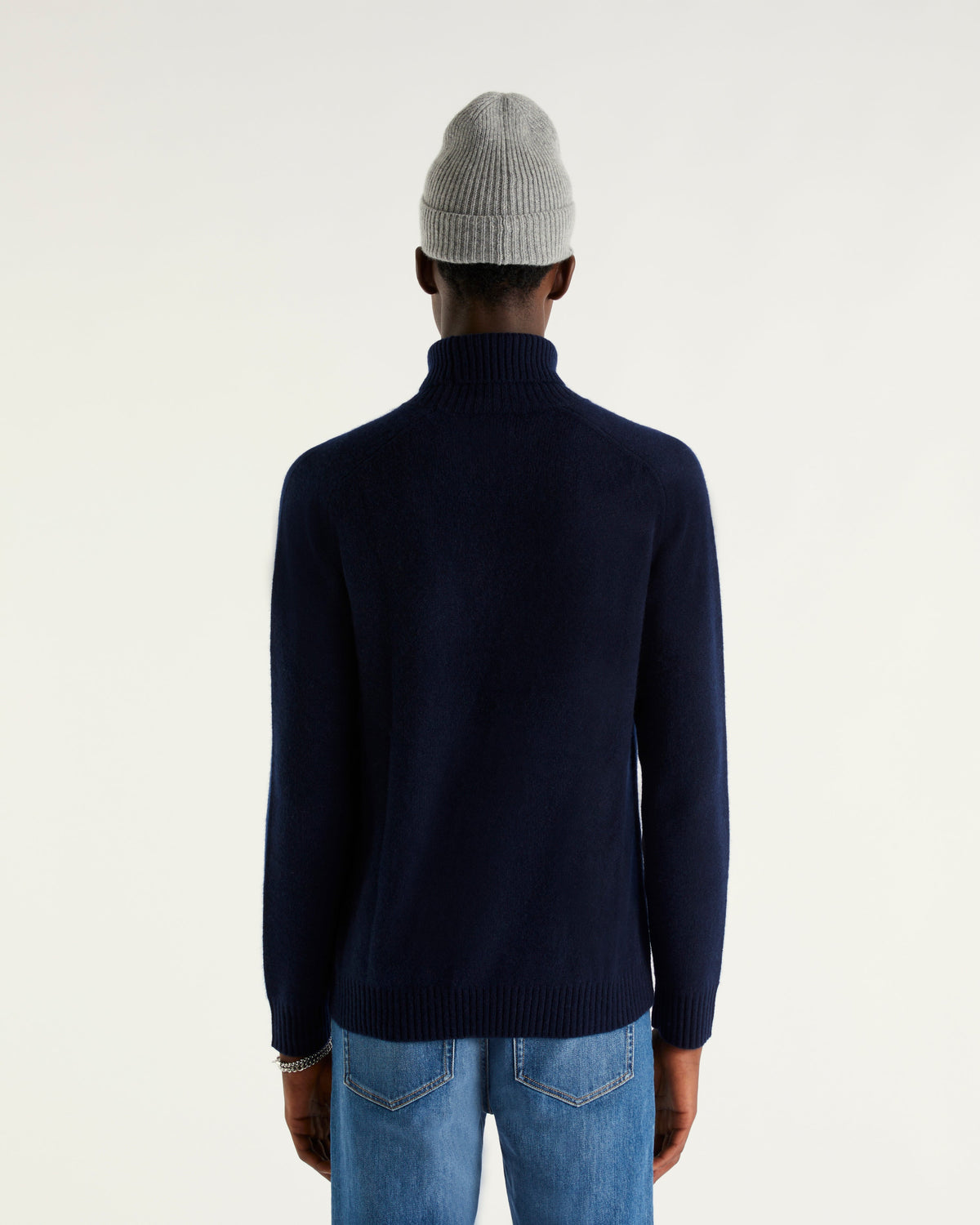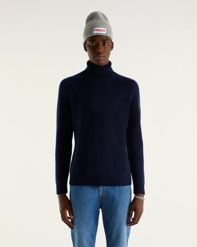 Pull Col Roulé Manche Marteau 4 Fils - 100% Cachemire - Navy