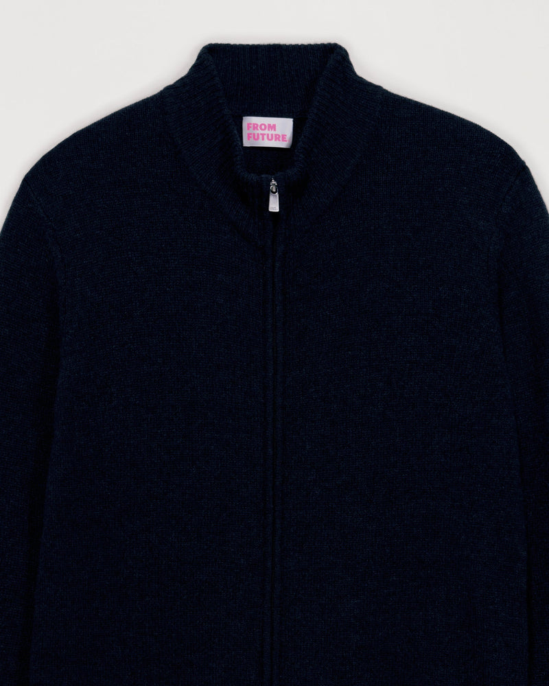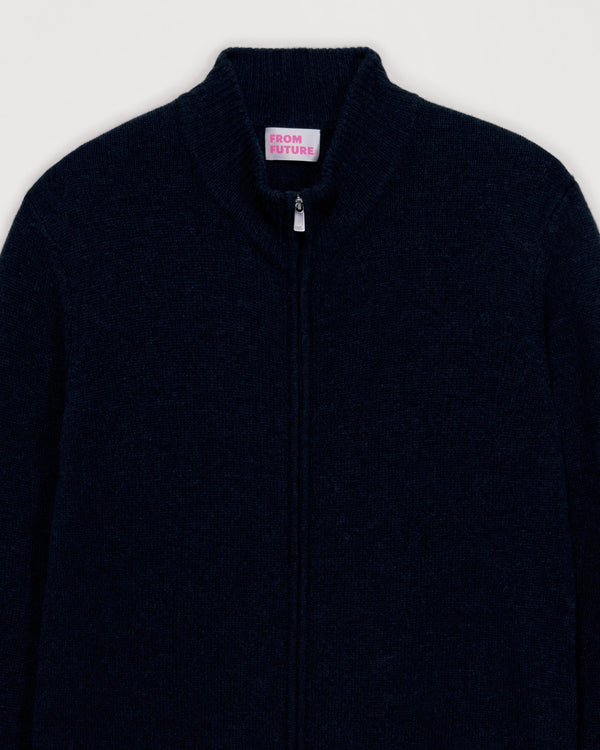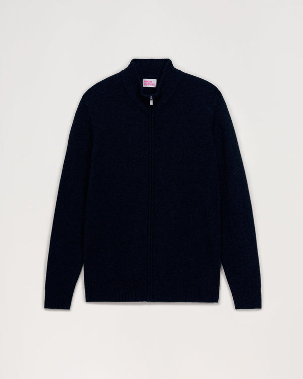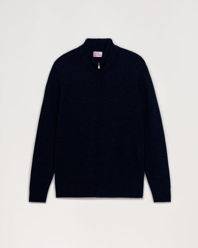 Gilet Zippé 4 Fils - 100% Cachemire - Bleu chine
