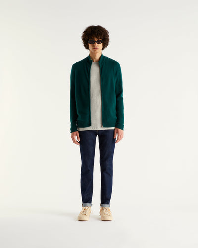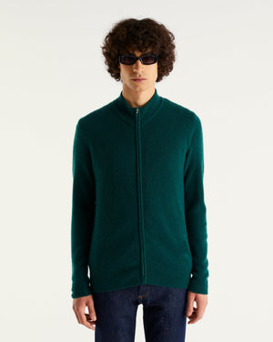Gilet Zippé 4 Fils - 100% Cachemire - Bottle green