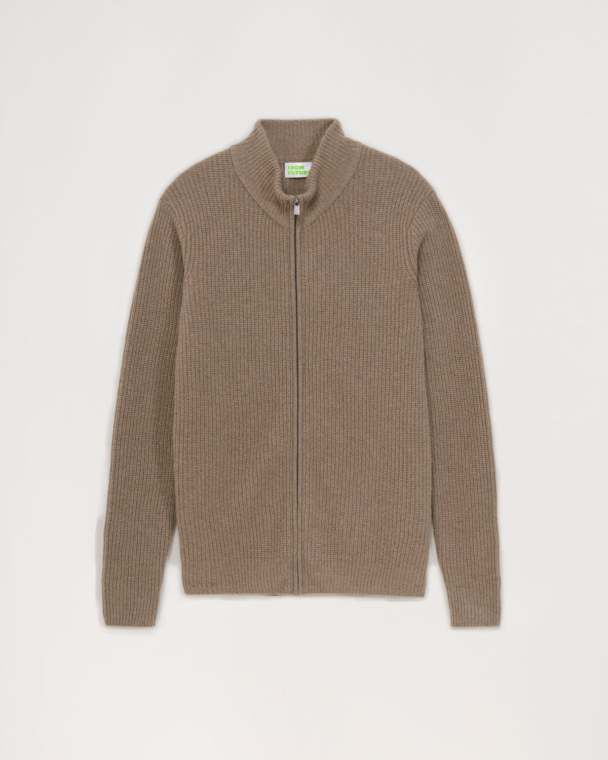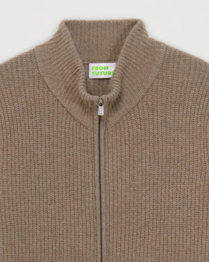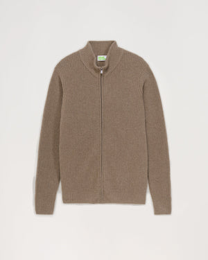 Gilet Zippé À Côtes 4 Fils - 100% Cachemire - Taupe