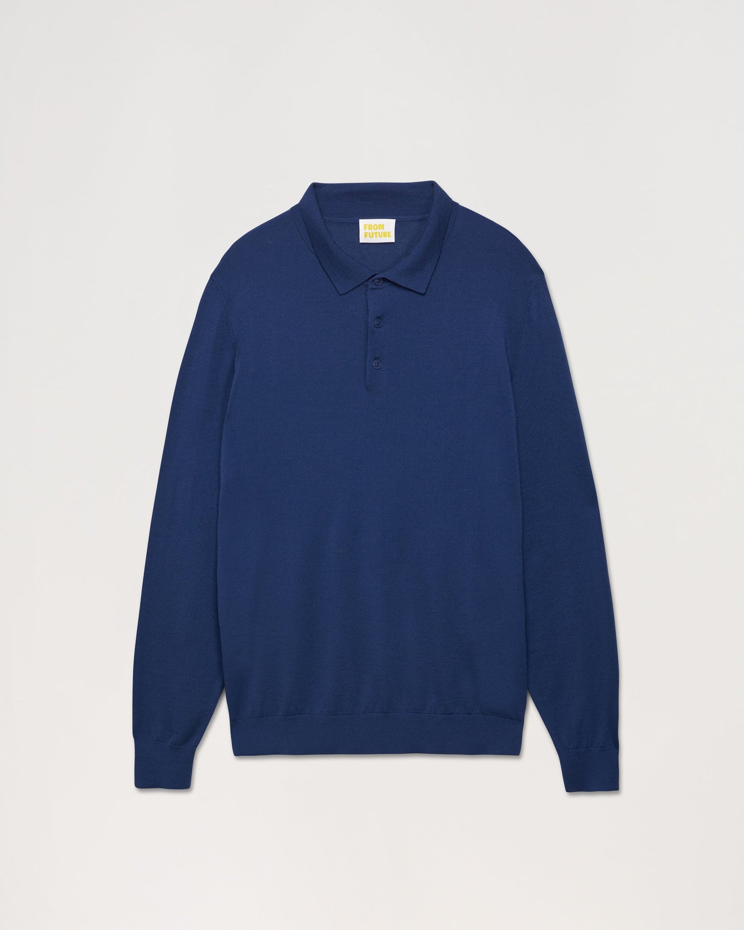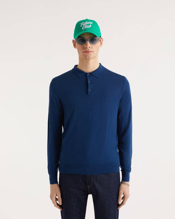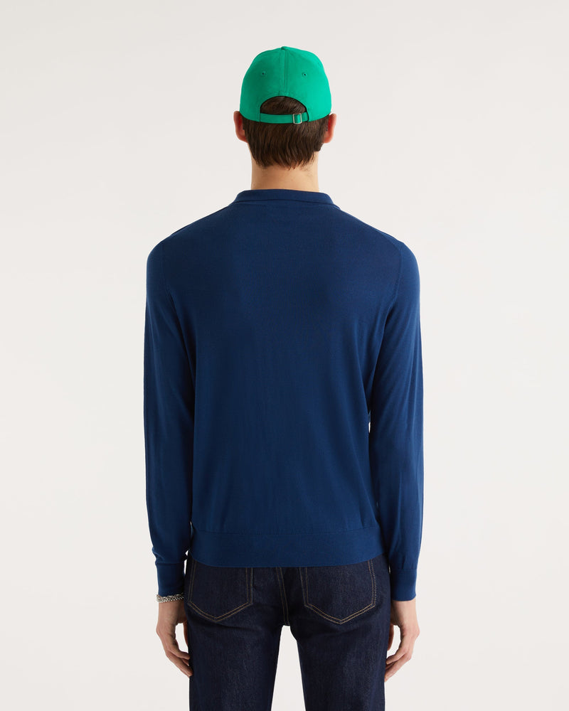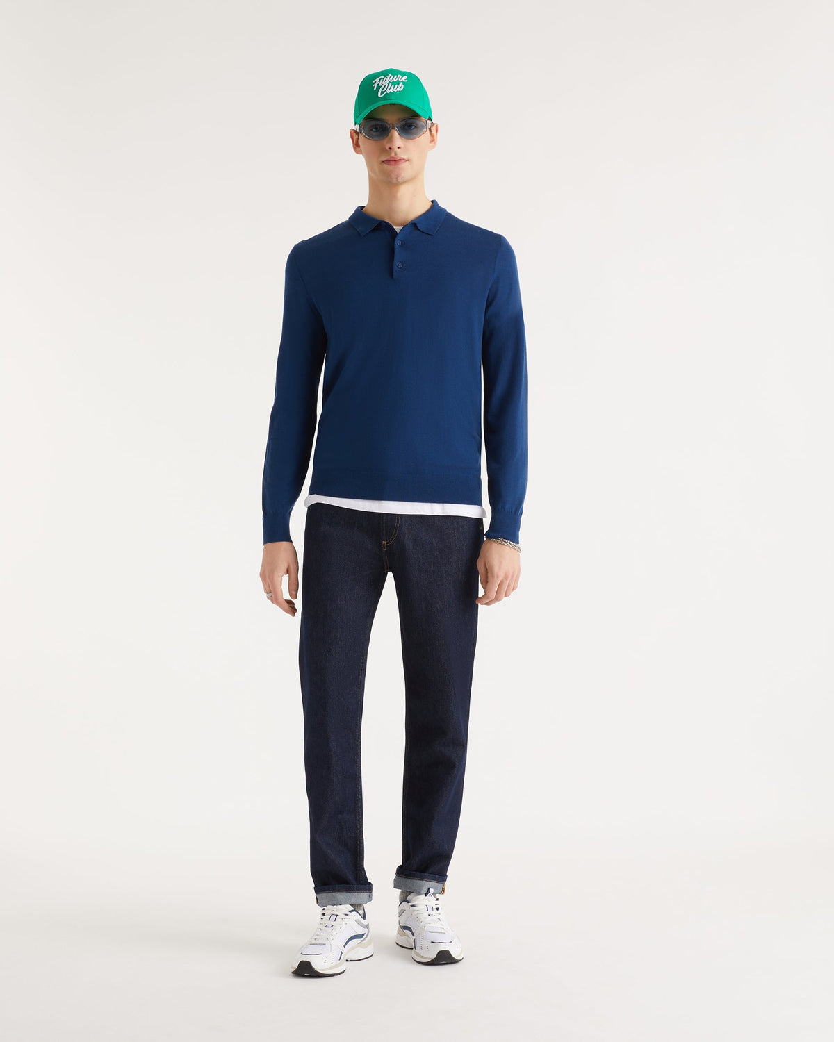 Pull Pull Col Polo Uni - Laine Mérinos - Midnight blue